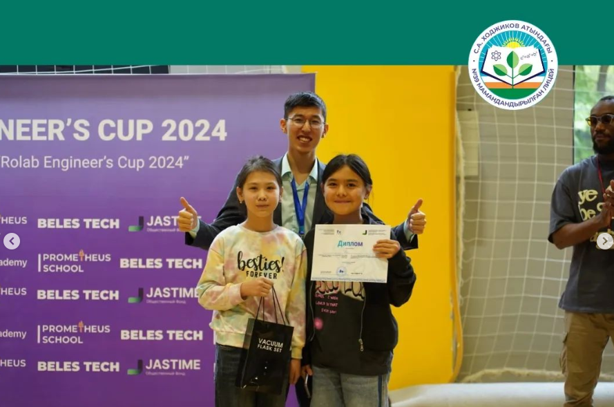 2024 жылдың 27 сәурінде өткен III Open STEAM Olympiad "Rolab Engineer’s Cup" 2024 жарысында біздің 5 сынып оқушыларымыз Competitive robotics, Innovative Projects және Roblox Studio бағдарламасында level-design катеогриялары бойынша керемет нәтиже көрсетті. Біздің мектебіміз innovation projects бойынша ең көп жеңімпаздар санымен кубок иегері атанды.