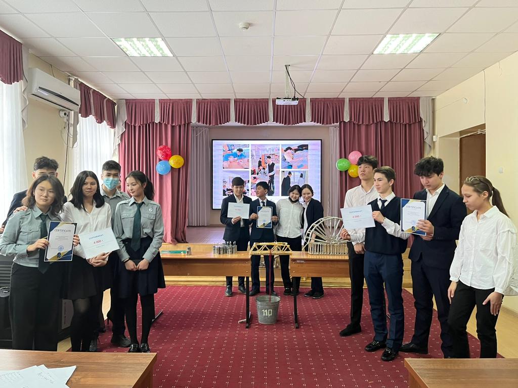 Физика пәнінің мұғалімі Алиева А.А. 9-10 сынып оқушылар командаларымен макароннан көпірлер түрлерін жасап, жоба жұмыстарын қорғап, қаншалықты берік екендігін тексеріп, орындар беріліп, 1-орын 10000, 2-орын 6000, 3-орын 4000 теңге көлемінде оқушылар командаларына сертификаттар берілді. Іс-шара оқушылардың физикалық білімдерімен қоса инженерлік дағдыларын, қызығушылықтарын оята білді.