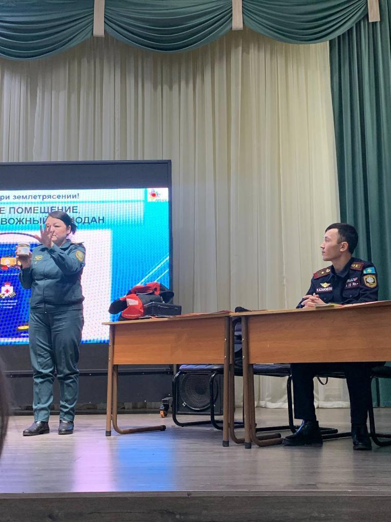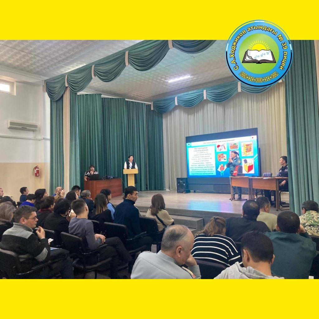 Алматы қаласы әкімінің орынбасары А.К.Амрин тапсырмасымен, Алмалы ауданының төтенше жағдайлар басқармасы № 79 Каскадный Гимназия КММ акт залында “Алматы қаласы әкімінің орынбасары А.К.Амрин бекіткен төтенше жағдайлардағы мінез-құлық қағидалары туралы халықтың хабардар болуы” көрсеткіші бойынша 2025 жылғы Алматы қаласын дамыту Бағдарламасын және 2030 жылға дейінгі орта мерзімді перспективаларды іске асыруға мемлекеттік органдар мен ұйымдарды Бекіту жоспарының 8-тармағын орындауда әдіспен Алмалы ауданының барлық білім беру объектілерінің (29 мектеп) өкілдерімен “табиғи және техногендік сипаттағы ТЖ қаупі мен туындауы кезіндегі халықтың іс-әрекеттері”;” ТЖ кезінде жиналатын орындар”;” зардап шеккен халықты қабылдау пункттері”,” жер сілкінісіне дейінгі, жер сілкінісі кезіндегі және одан кейінгі іс-қимылдар”, “дабыл чемодан”, “Дармен” қосымшасы туралы айтылды. Осы мақсатта С.А.Ходжиков атындағы №39 мамандандырылған лицей оқушылары мен ұстаздарына арнайы түсіндірме жұмыстары жүргізілді.