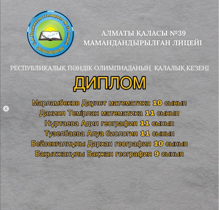 13-14 ақпан аралығында Республикалық пәндік олимпиаданың қалалық кезеңі өтті. Соның ішінде математика-жаратылыстану бағытындағы нәтиже: