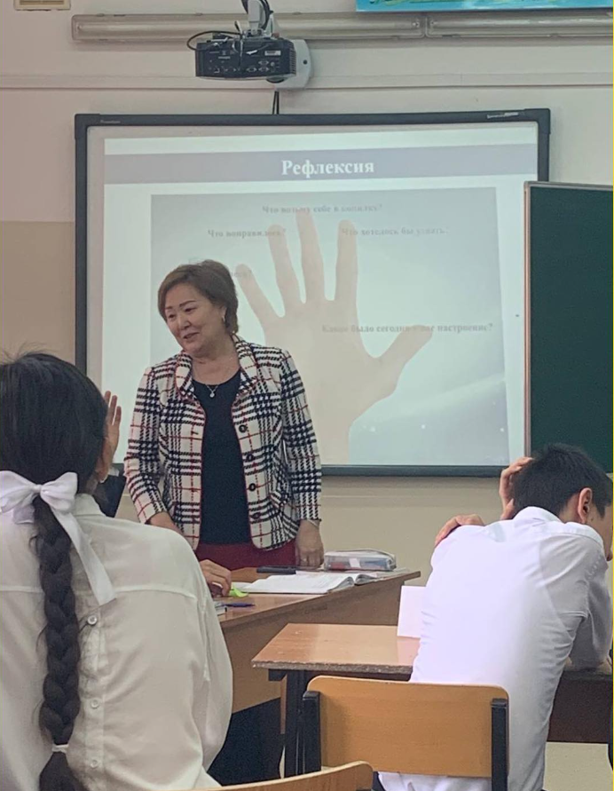 На уроке учитель умело использовала активные методы обучения как «Фишбоун» , стратегию «ПОПС – формулы», где ученики окализируя образ главной героини, сумели сжато излагать информацию прочитанного рассказа, выражали свои собственные позиции.