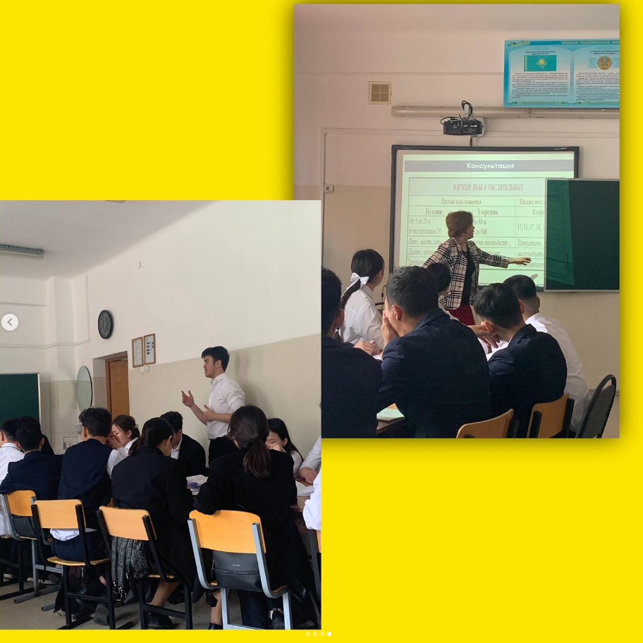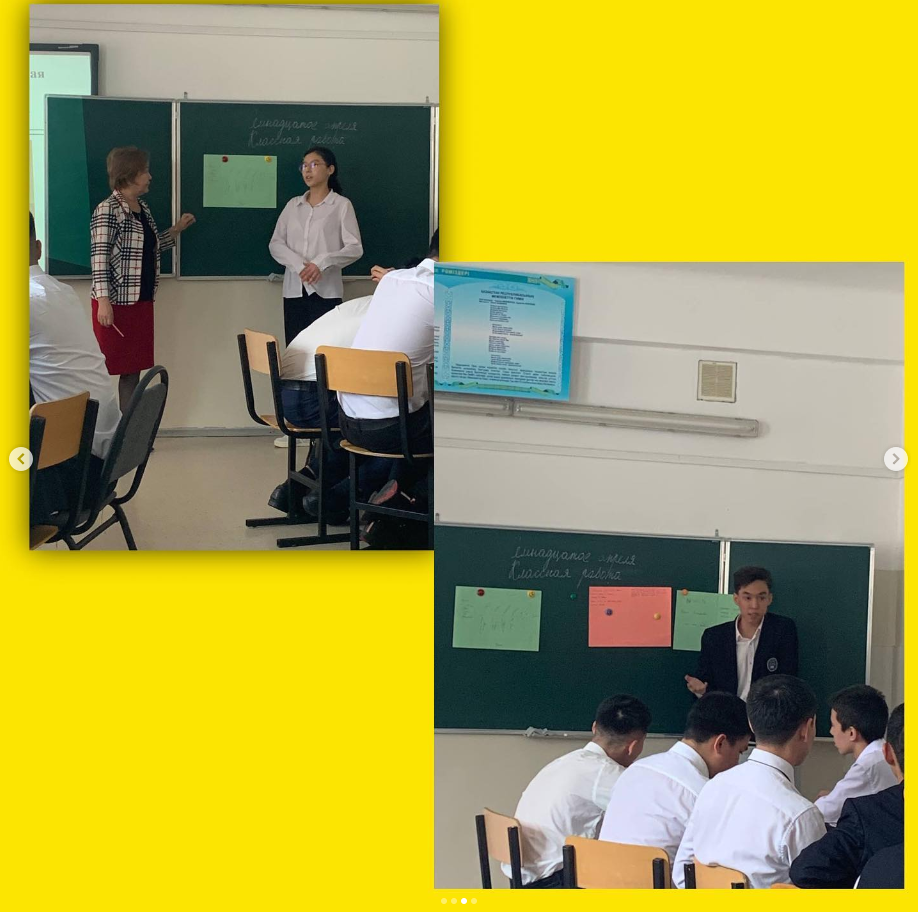 13 апреля учитель русского языка и литературы Ахмедиева А.М. на декаде филологии провела урок в 7 «Б» классе на тему К.Кайсенов «В тылу врага» для активного участия учеников на уроке были применены методы ; «Бельевая веревка» , стратегия «Ромашка», «ДЖИГСО» и платформа «Wordwall». С помощью этих методов ученики показали свои знания