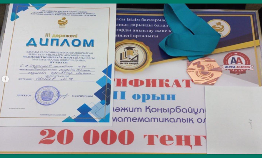 Әбдімәжит Қоңырбайұлы Өтеш атындағы қалалық математикалық олимпиаданың 3-орын иегері атанды.