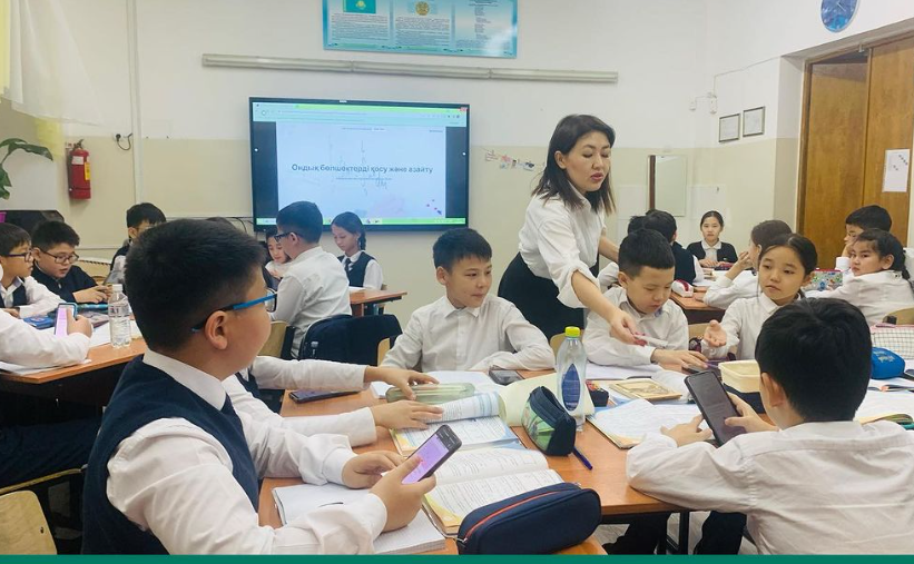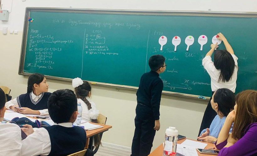 “Ой қозғау” әдісімен “ “Шынықсаң шымыр боларсың” девизімен “Математикалық ондық бөлшектердің шығу тарихы” бойынша StBoard тақтасы арқылы бейнеролик көрсетіліп, сұраққа жауап беріп, математиканың құндылығын оқушылар аша білді. Топтың ішіндегі жеке жұмысқа тест тапсырмалары беріліп, “Online TestPad” платформасымен алған білімдерін бекітті. “Онлайн тақта” әдісімен рефлексия жасалды. Әсем Қанатқызының сабағы құндылыққа толы, оқушылардың функционалдық сауаттылықтарын қалыптастыру бағытында сапалы сабақ түрін көрсетті.