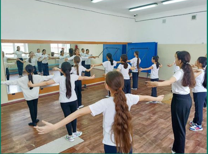 “Эстетикалық , АӘТД және дене шынықтыру пәндер мұғалімдері” кафедрасының ашық сабақтар айлығында хореография үйірмесінің жетекшісі Исаева Гульден Альденовна “Қазақ би «Шашу» үйрену , бидегі қол қимылдары” тақырыбында 5-6 сынып оқушыларымен өткізген ашық сабағында “Ырғақты жаттығулар”, “Қол позициялары” (дайындық 1,2,3),