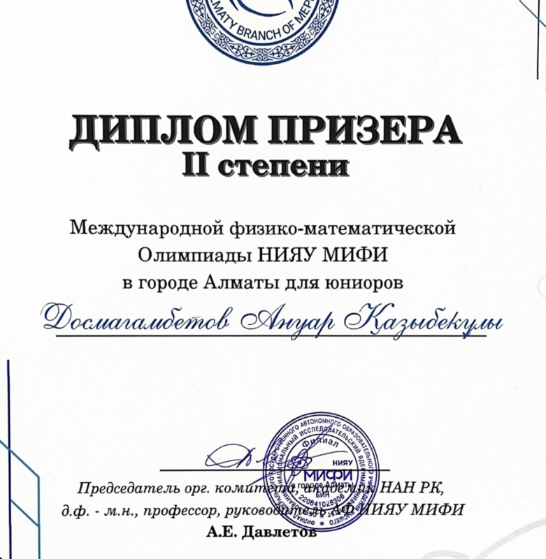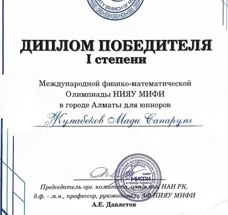 Халықаралық НИЯУ МИФИ ұйымдастырған юниорлар олимпиадасынан лицей оқушылары жүлделі орындарға ие болды