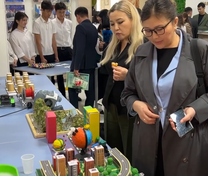 Мектеп фойесінде ұйымдастырылған ғылыми-жаратылыстану, математика-информатика кафедра мұғалімдері оқушылардың тәжірибелік көрмелері ұйымдастырылды.