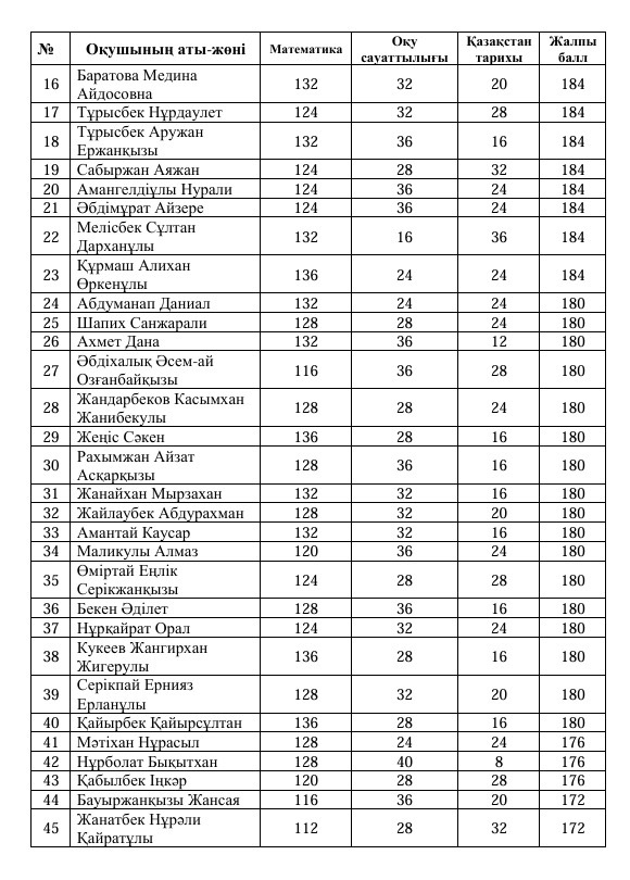 7-сыныптар үшін босаған орындарға қабылдау емтиханының ХАТТАМАСЫ