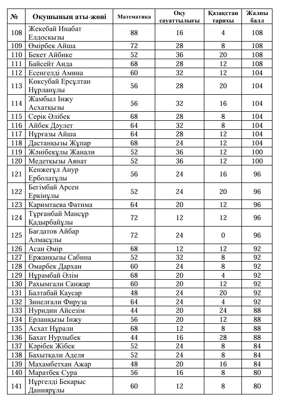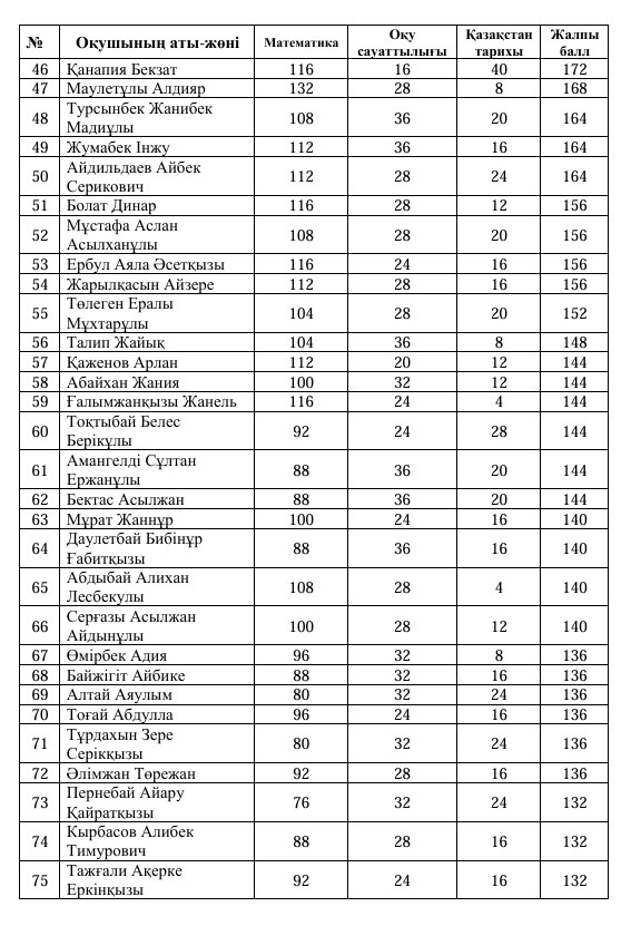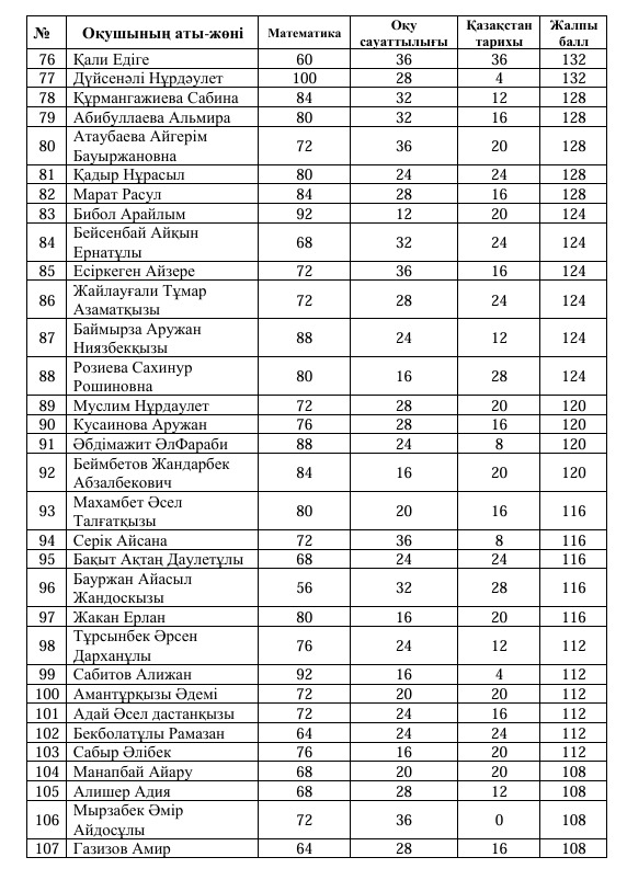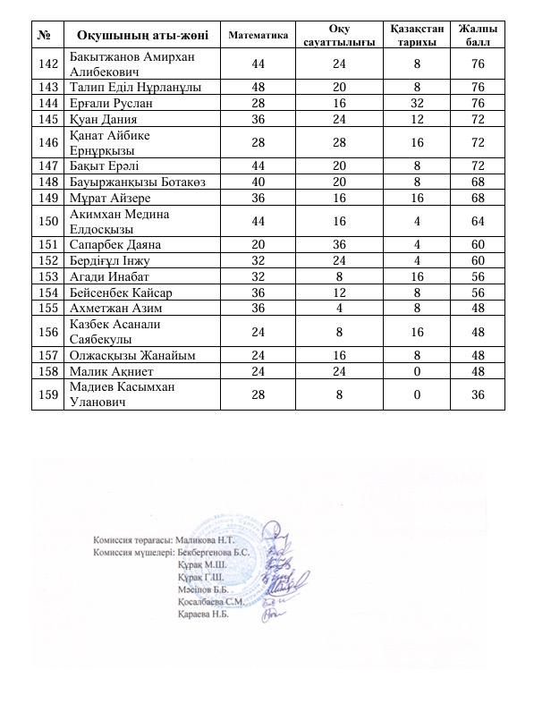 С.А.Ходжиков атындағы №39 мамандандырылған лицейдің 7-сыныптарда босаған орынға түсушілер үшін 2025 жылдың 7 маусымы күні өткізілген тест жұмысының қорытындысы