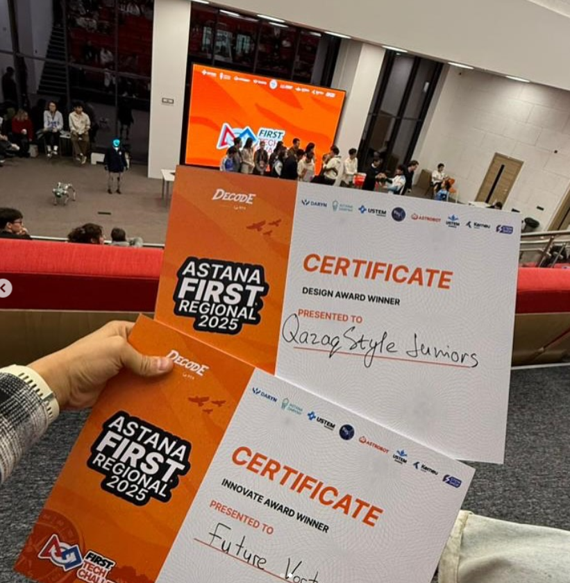📍 Burabay Regional FIRST 2025 жартылай финалға өтіп, Innovative Award Winner атағын жеңіп алды. Бұл — инженерлік ойлау мен жаңа шешімдерге деген талпыныстың дәлелі.