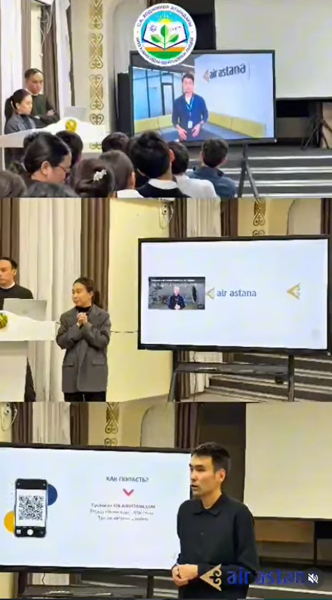 Мектебімізде кәсіби бағдар беру жұмысы аясында «Air Astana» компаниясының инженер-техник оқу бағдарламасы бойынша түсіндірме жұмыстары жүргізілді. Шара барысында оқушыларға авиация саласындағы мүмкіндіктер таныстырылып, қатысушылар тарапынан үлкен қызығушылық пен белсенділік көрсетті.