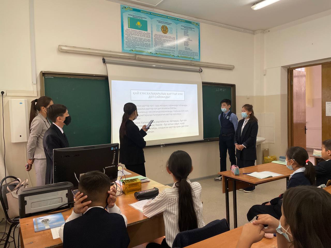 1-қазан қарттар күніне арнап 9 "А" сынып оқушылары "Өсетін елдің қарты - қазына" тақырыбында сынып сағатын өткізді✅. Жоғарғы сынып оқушылары 5-сыныптарға осы мерекенің тойлануы мен тарихын баяндады. Сабақ ортасында ата-әжелеріміз жайлы мақал-мәтелдер айтып жарысты🙋🏻♀️. Қарттарды құрметтеп, оларға әркез қол ұшын беріп, көмектесу жайлы сөз қозғады👨👨👧👧. Ата мен баланың арасындағы байланыс жайлы видео көрсетіліп, баланың әрекеті дұрыс емес екені талқыланды. Сабақ соңында 5-сынып оқушылары өздерінің ата-әжелеріне хат жазып📝, жақсы лебіздерін білдірді. Осындай рухани сабақты ұйымдастырған 9 "А" сынып жетекшісі Адырова Райгуль Абдиманаповнаға алғысызды білдіреміз!