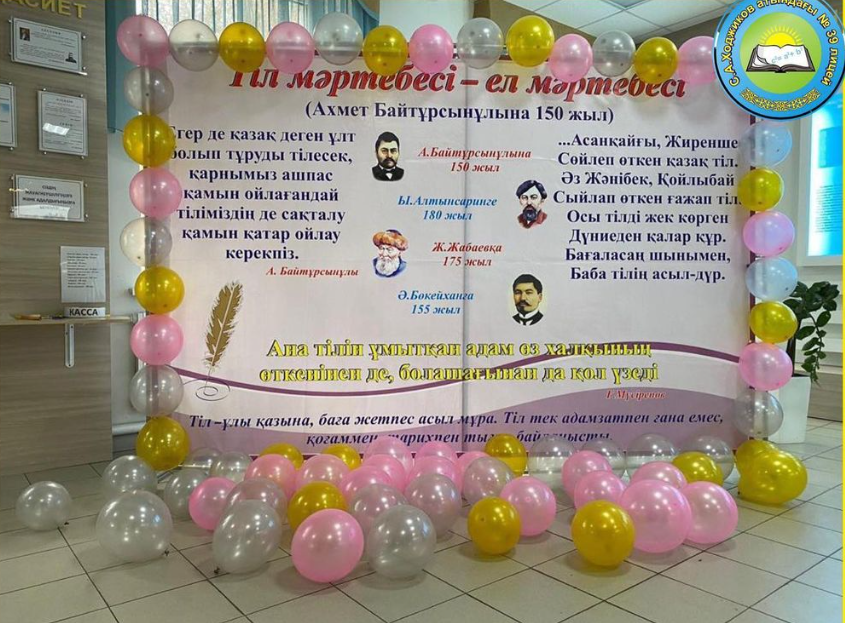 Алматы қаласы, Алмалы ауданы, С.А.Ходжиков атындағы 39 мамандандырылған лицей Ахмет Байтұрсынұлының 150 жылдығына орай, тіл мерекесіне арналған «Білімнің сәулесін шашқан ұлы ұстаз» атты сыныптан тыс іс-шаралар ұйымдастырылды.