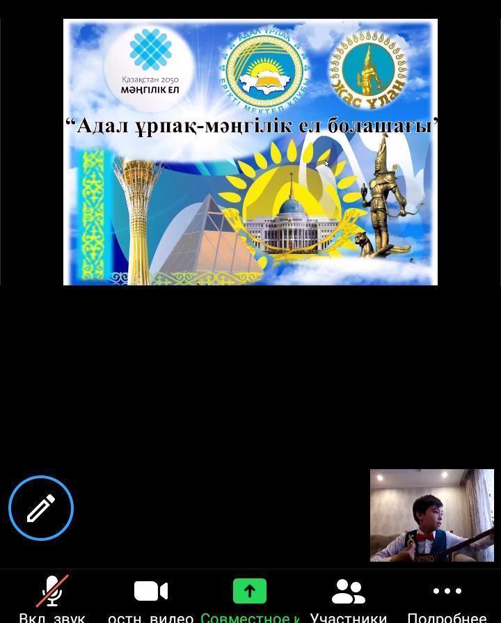 Рухани адамгершілік және азаматтық патриоттық тәрбиелеуге бағытталған шараларды іске асыру, саяси құқықтық білімді қалыптастыру, сыбайлас жемқорлыққа қарсы мінез-құлықтың адамгершілік, этикалық құндылық негіздерін қалыптастыру мақсатында онлайн форматта лицей оқушыларын «Адал ұрпақ» ерікті мектеп клубына қабылдау рәсімі өткізілді.