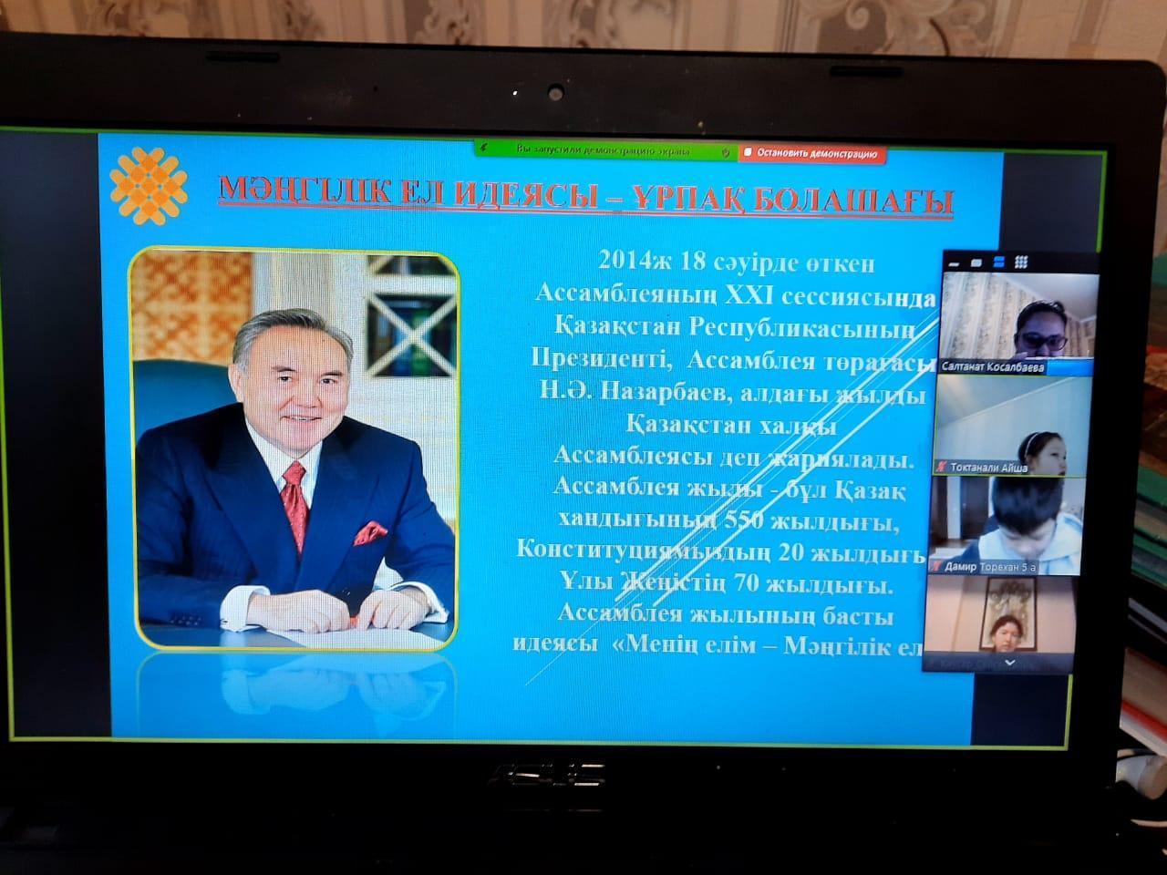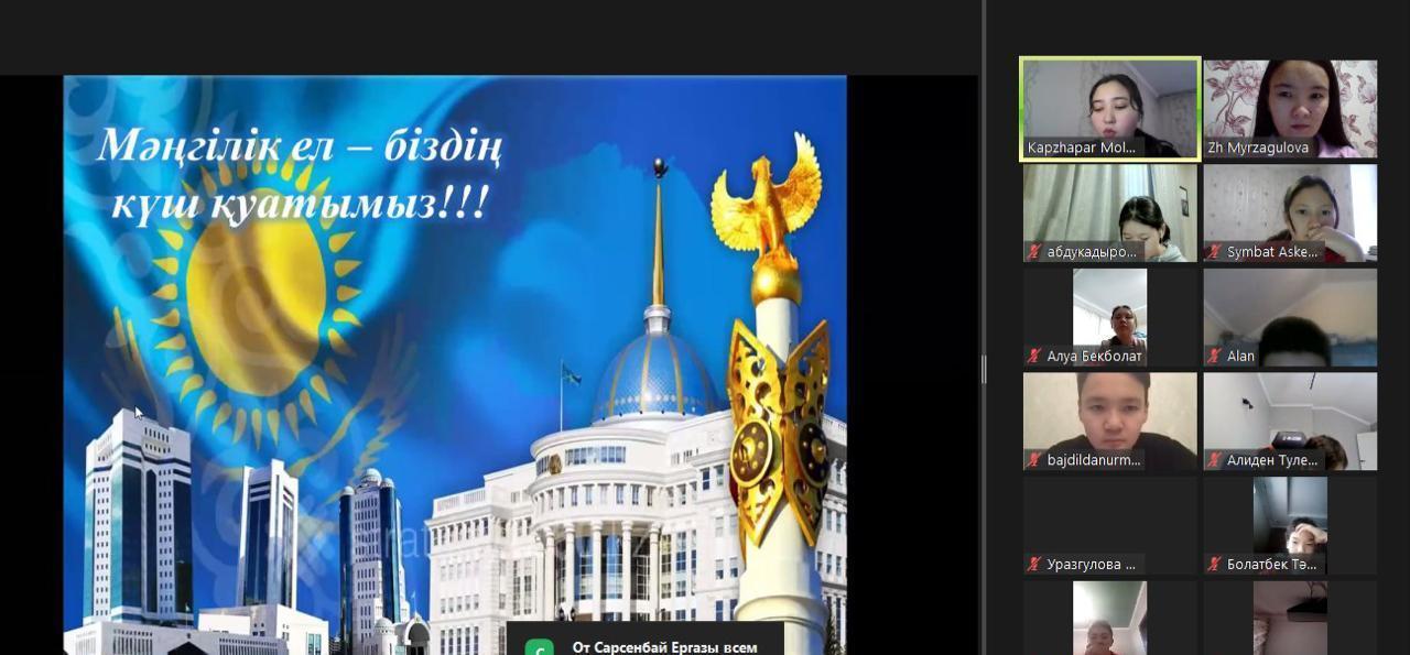 15 желтоқсан 2020 0 1 2 3 4 5 «Мәңгілік ел-біздің күш қуатымыз» С.А.Ходжиков атындағы №39 мамандандырылған лицейде, Тәуелсіздік күні қарсаңында «Мәңгілік ел-біздің күш қуатымыз» тақырыбында бірыңғай сынып сағаты болып өтті.