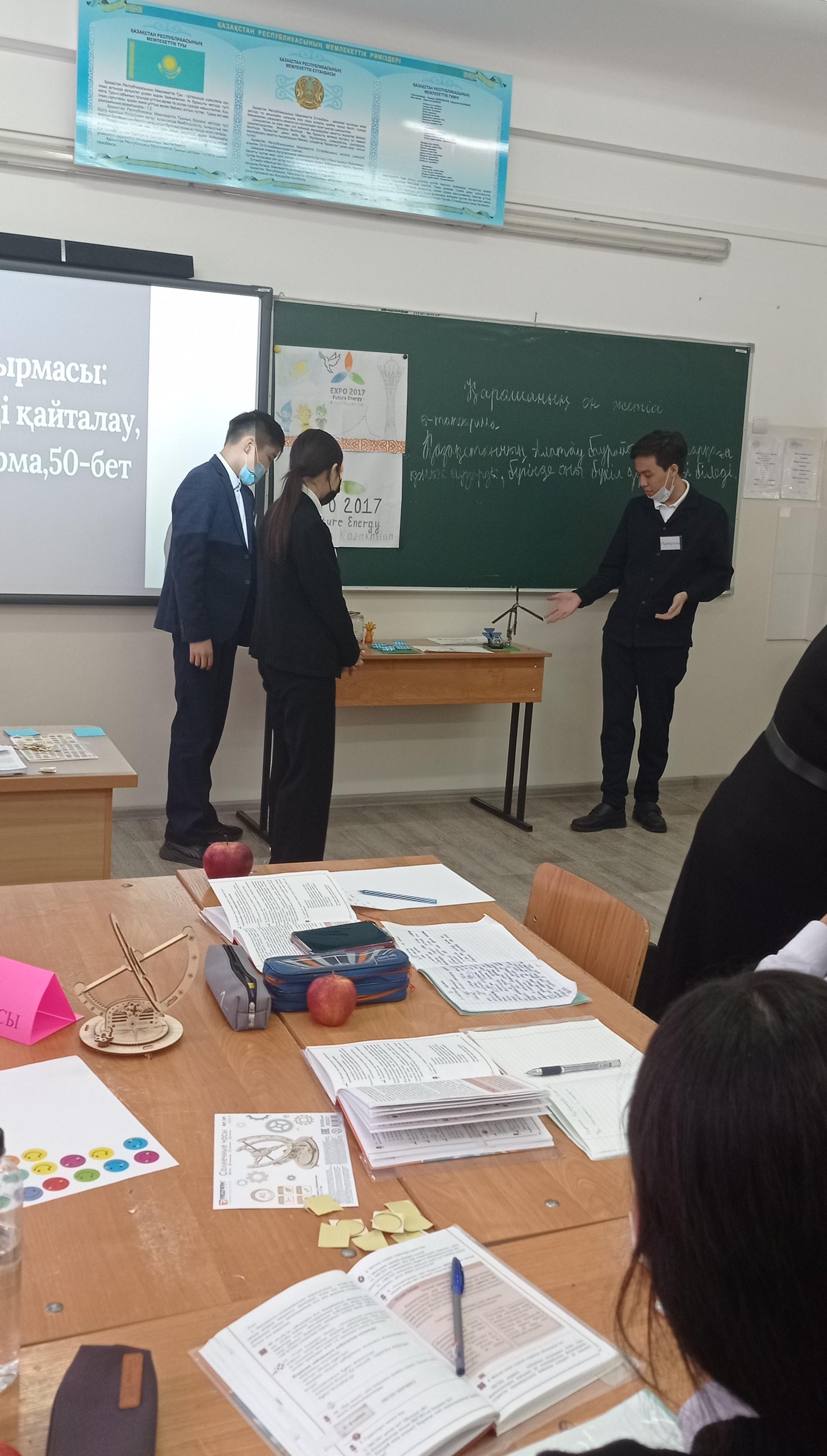 2021 жылдың 15-25.11 аралығында "Тіл мәртебесі - ел мәртебесі" тақырыбында қазақ тілі мен әдебиет пәндер мұғалімдері кафедрасының онкүндігі аясында пән мұғалімі Баимбетова Р.А. 9-сыныппен "ЭКСПО көрмесі" тақырыбында ашық сабағы оқушылардың шағын зерттеу әлеуетін таныта отырып, ерекше сабақ үлгісін көрсетті. Сондай-ақ, жас маман Караева Н.Б. 7-сыныппен "Сүйіспеншілік - шынайы сезім" тақырыбында өткізген сабағында сандық білім негізінде flippity.net технологиясын ұтымды қолдана білді.