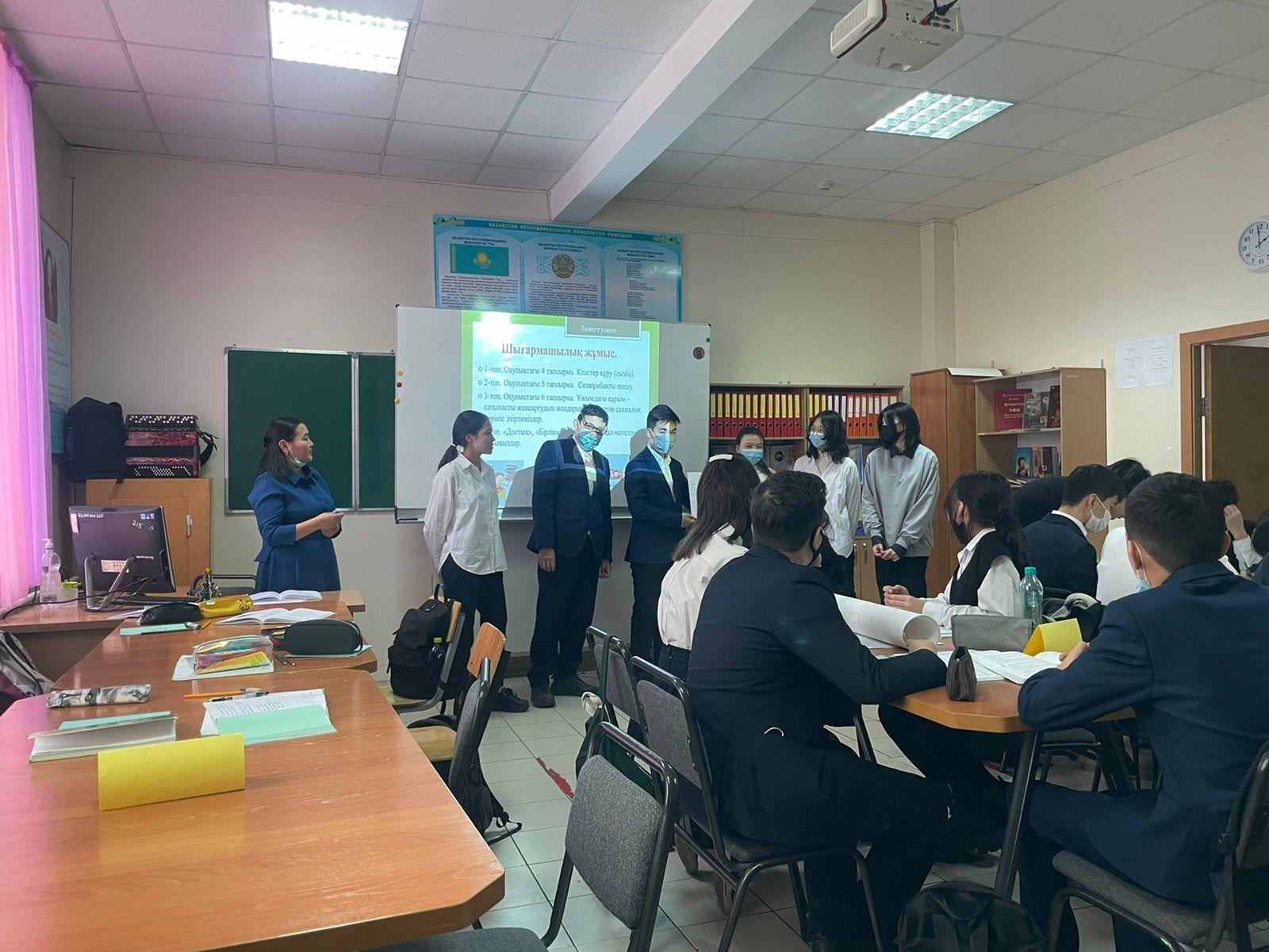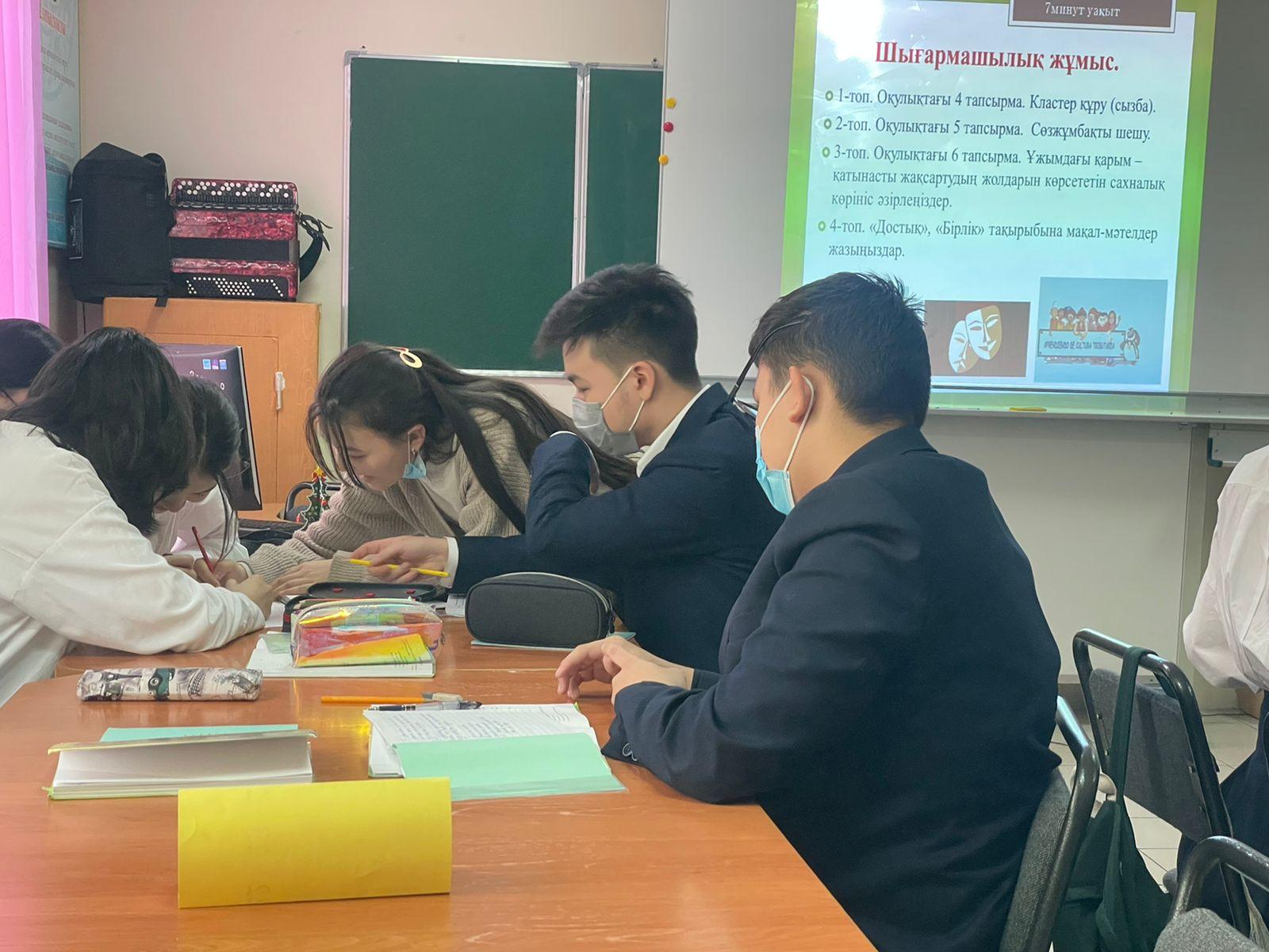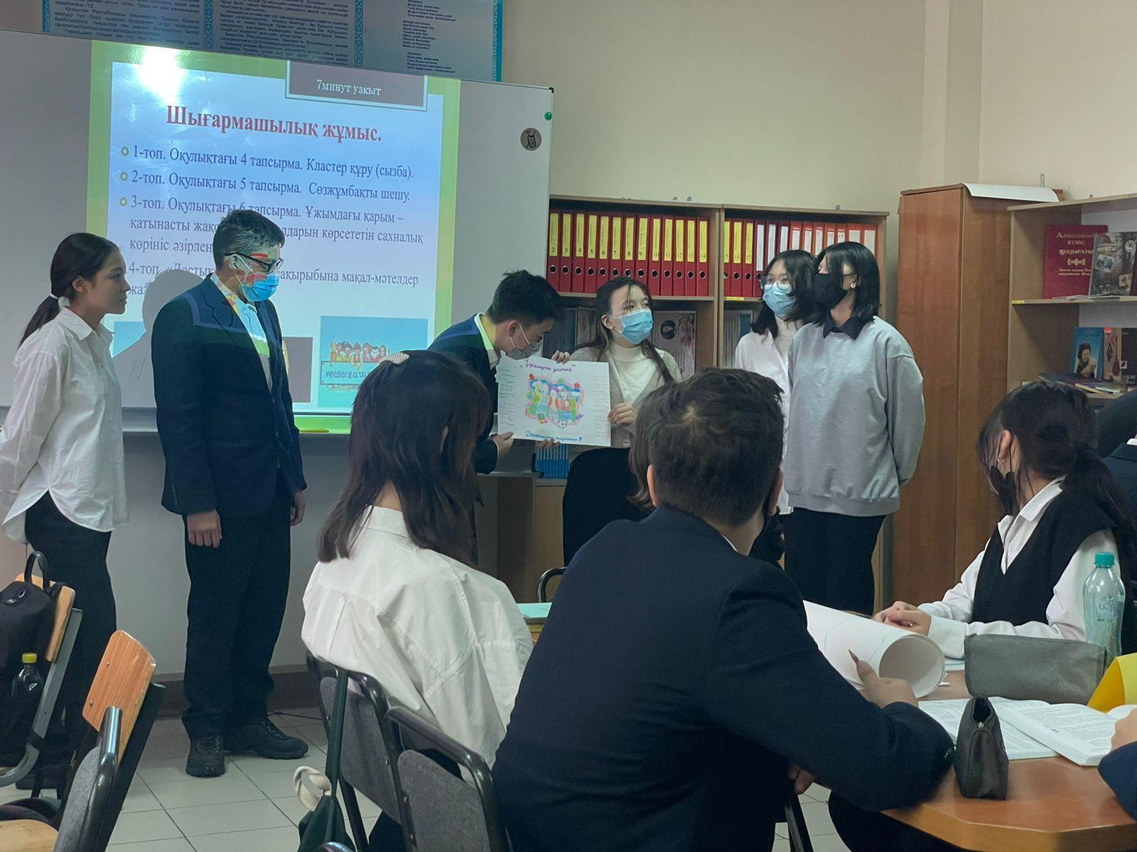 5-ақпан күні Өзін-өзі тану онкүндігі аясында 9"В"сынып оқушыларымен "Ұжымдағы ынтымақтастық" тақырыбында ашық сабақ өтті. Пән мұғалімі Магзумова Назым Куандыковна. Балалар ашық сабақ барысында балалар шығармашылық тапсырмаларды аса қызығушылықпен, белсенділікпен орындады.