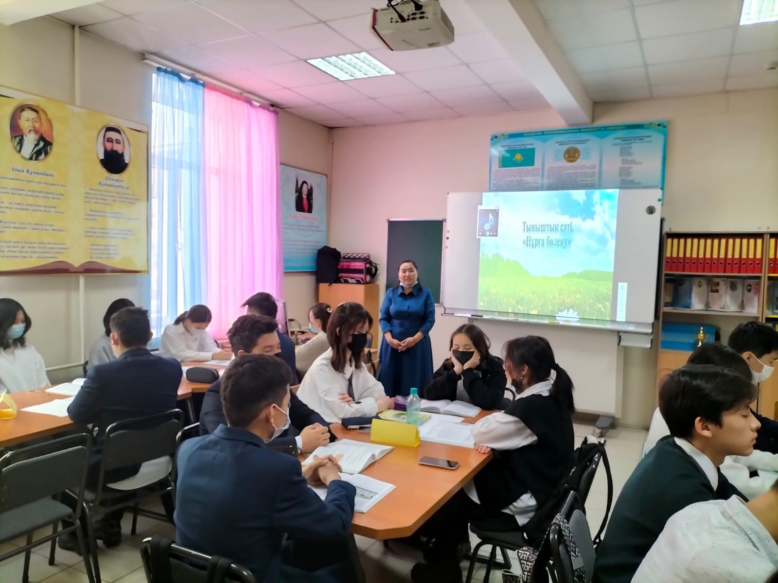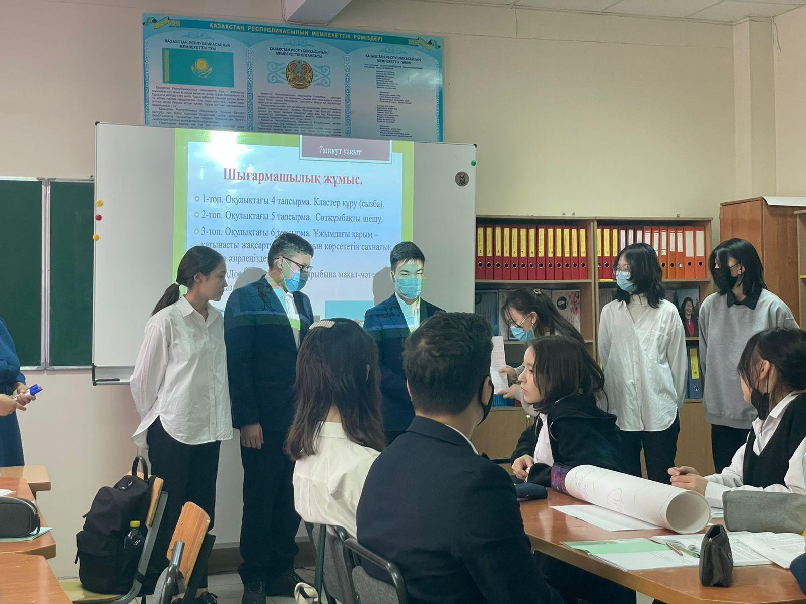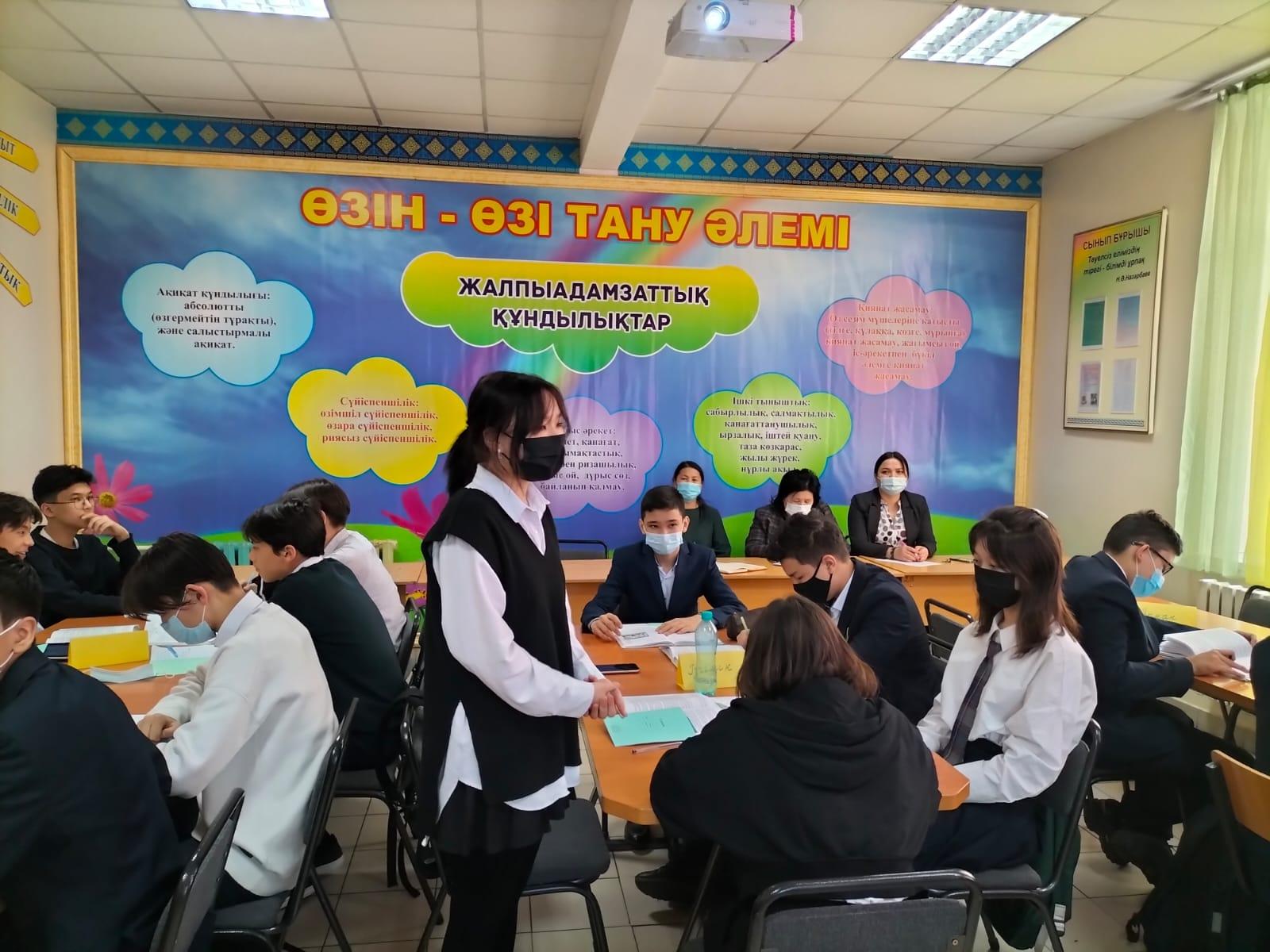 5-ақпан күні Өзін-өзі тану онкүндігі аясында 9"В"сынып оқушыларымен "Ұжымдағы ынтымақтастық" тақырыбында ашық сабақ өтті. Пән мұғалімі Магзумова Назым Куандыковна. Балалар ашық сабақ барысында балалар шығармашылық тапсырмаларды аса қызығушылықпен, белсенділікпен орындады.