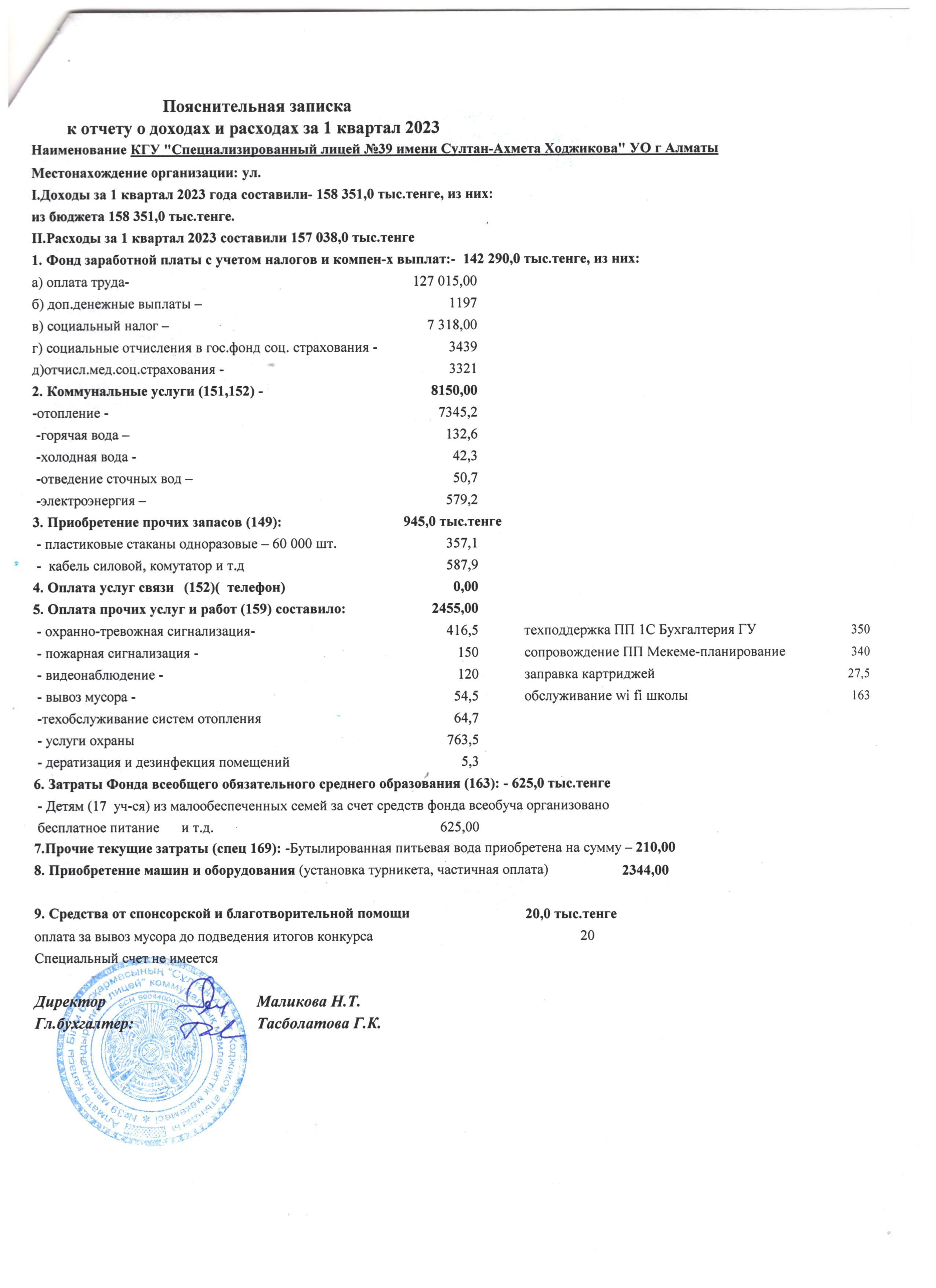 » ОТЧЕТ О ДОХОДАХ И РАСХОДАХ за 1 квартал 2023 года