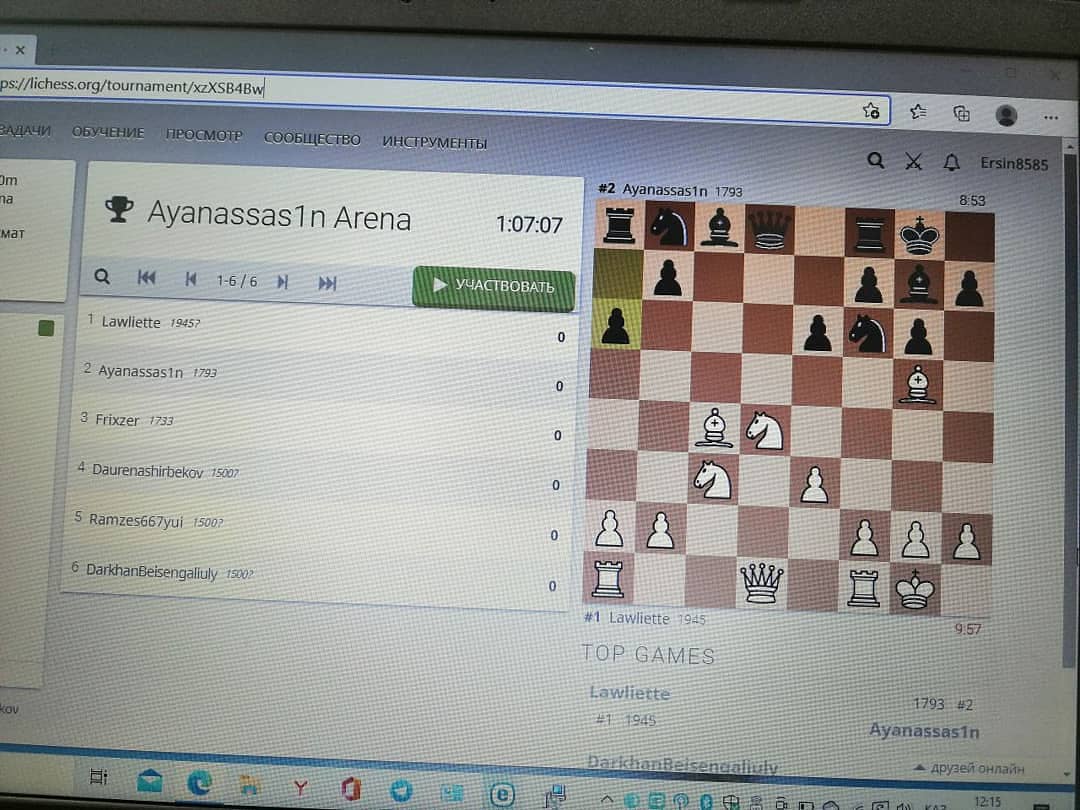 Оқушылардың интеллектуалды дағдыларын дамыту мақсатында, лицейдің дене шынықтыру пәнінің мұғалімі Шакиров Ерсін Ержанұлы 8 сынып ұлдары арасында онлайн шахмат турнирін ұйымдастырды. Турнирге 8 оқушы қатысып, үздіктер анықталды. 8 Б сынып оқушысы Әбдішүкір Айбек 1 орынға ие болса, 8 В сынып оқушылары Ермекбай Рамазан 2-орын, Ержанұлы Аян 3 орынға ие болды.