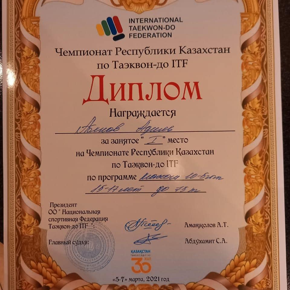 Лицейдің 10 Ә сынып оқушысы Абенов Адиль Таэквондо-до ITF Қазақстан Республикасының чемпионатына "Массоги 10-5 гып" бағдарламасы бойынша жүлделі 1 орынға ие болып, "Таэквондо ITF" Ұлттық спорт федерация президентінің алғыс хатымен марапатталды. Адильді жеңісімен шын жүректен құттықтаймыз!