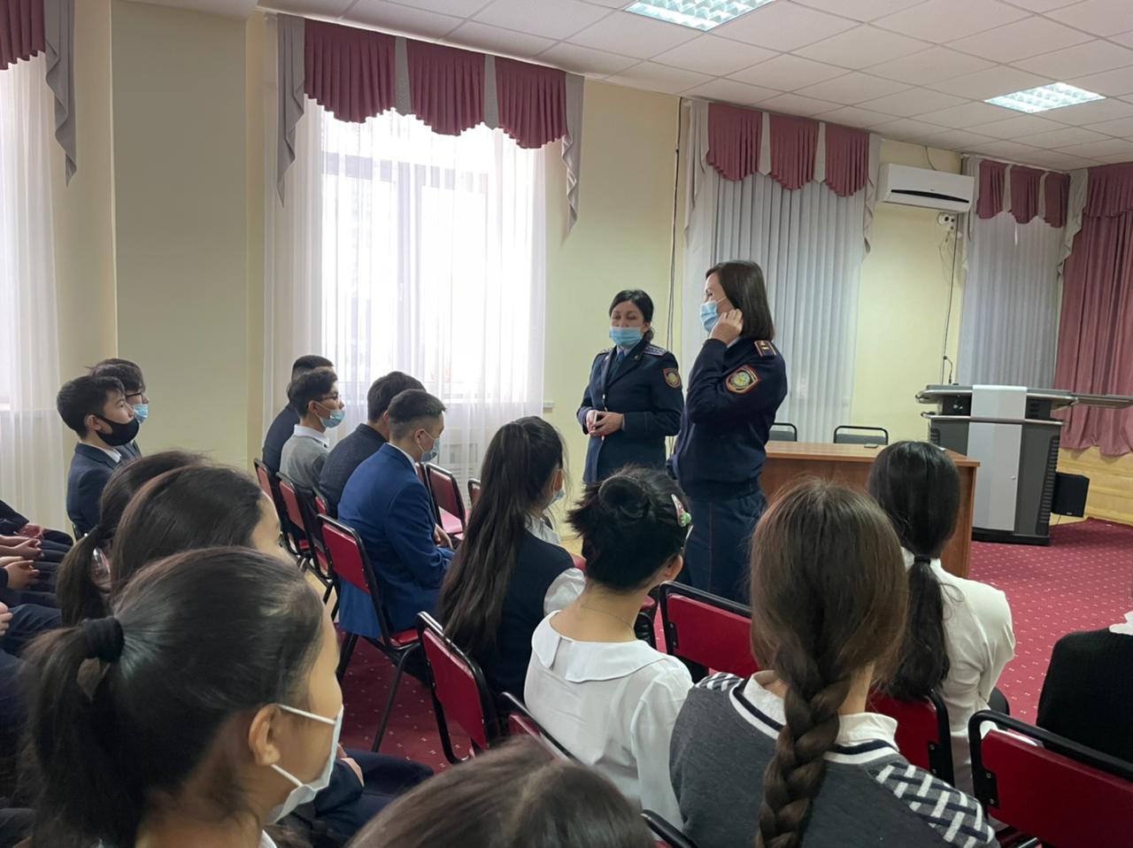 С.А. Ходжиков атындағы №39 мамандандырылған лицейде 9.11.2021ж күні Алмалы ауданының ПБ ЖПҚБ ЮПБ аға УИ полиция майоры Бейсенова Н.Б. және полиция капитаны Исабекова А.Р., директордың тәрбие ісі жөніндегі орынбасары Сұлтанқұлов А.М. қатысуымен оқушылар арасында "Жыныстық қол соғылмаушылық", "Колумбайн", "Өз-өзіне қол жұмсау" сынды тақырыптар аясында профилактикалық әңгіме жүргізілді. Қылмыстық және әкімшілік құқықбұзушылық туралы ҚР ҚК-нің және ҚР ӘҚБК-тің бірнеше баптарымен таныстырып, түсіндірме жұмыстарын өткізді.