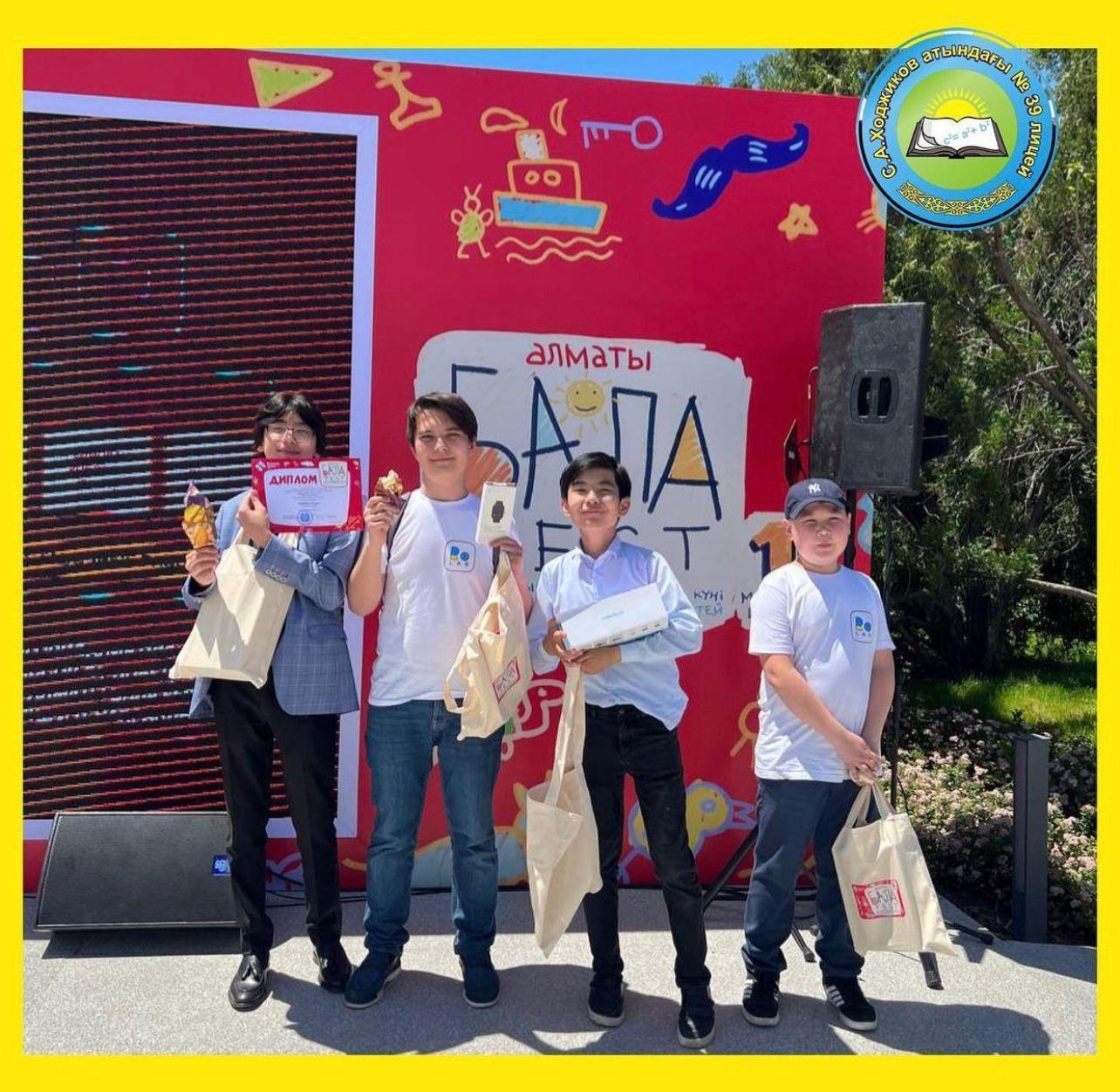 Бүгін Алматы қаласында Халықаралық балалар күніне орай ұйымдастырылған «Алматы БалаFest» шығармашылық фестивалінің жабылуына мемлекет басшысы Қасым-Жомарт Тоқаев қатысты. Президент фестивальдің әрбір номинациясына арналған алаңдарына тоқтап, жеңімпаздардың өнерін тамашалап, сұхбаттасып, олардың жетістіктеріне көңілі толғанын байқатты. Әр баланың жүзінде бүгінгі мерекеде қуаныш көрдік, өз еңбектерінің бекер еместігін, қаншалықты маңызды екенін сезінді. 🔰39 лицей оқушылары Нұрғали Ерасыл шахматтан жүлделі 🏆lII-орын алса, Орынбасаров Алихан, Дүйсенбек Әли, Әшірбеков Дәурен, Сүлеймен Ескендір "IT ХАКАТОН" робототехника байқауынан жүлделі 🏆I-орын жеңімпазы атанып, Президенттің және Білім және Ғылым Министрі Асхат Аймағамбетовтың қолынан грамота алып, бағалы сыйлықтар иеленді. Оқушыларымыз мерекені балаларға арналғанын сезініп, керемет көңіл күймен қайтты!Бала жылы балаларымыздың таланттары қуантып, марқайтты. Осындай өнерлі де білімді шәкірттер көп болсын деп тілейміз.