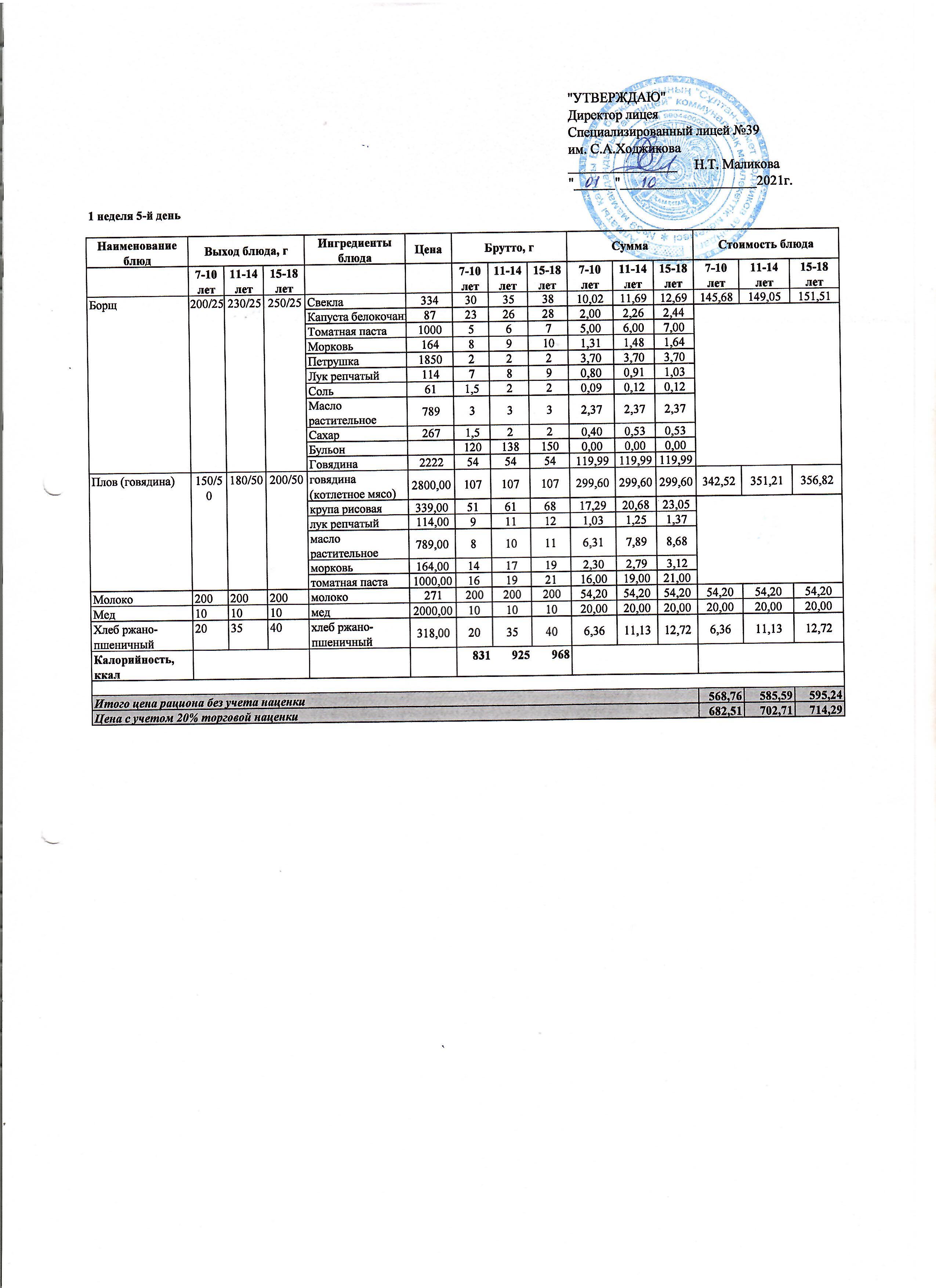 » Ас мәзірі 01.10.2021ж