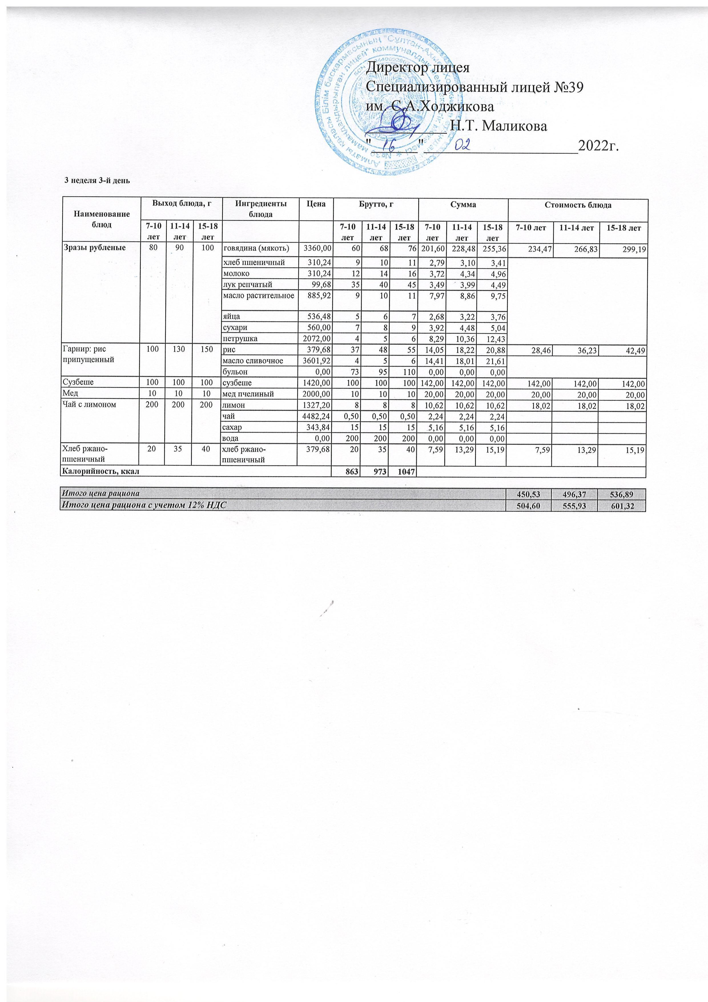 Ас мәзірі 16.02.2022ж