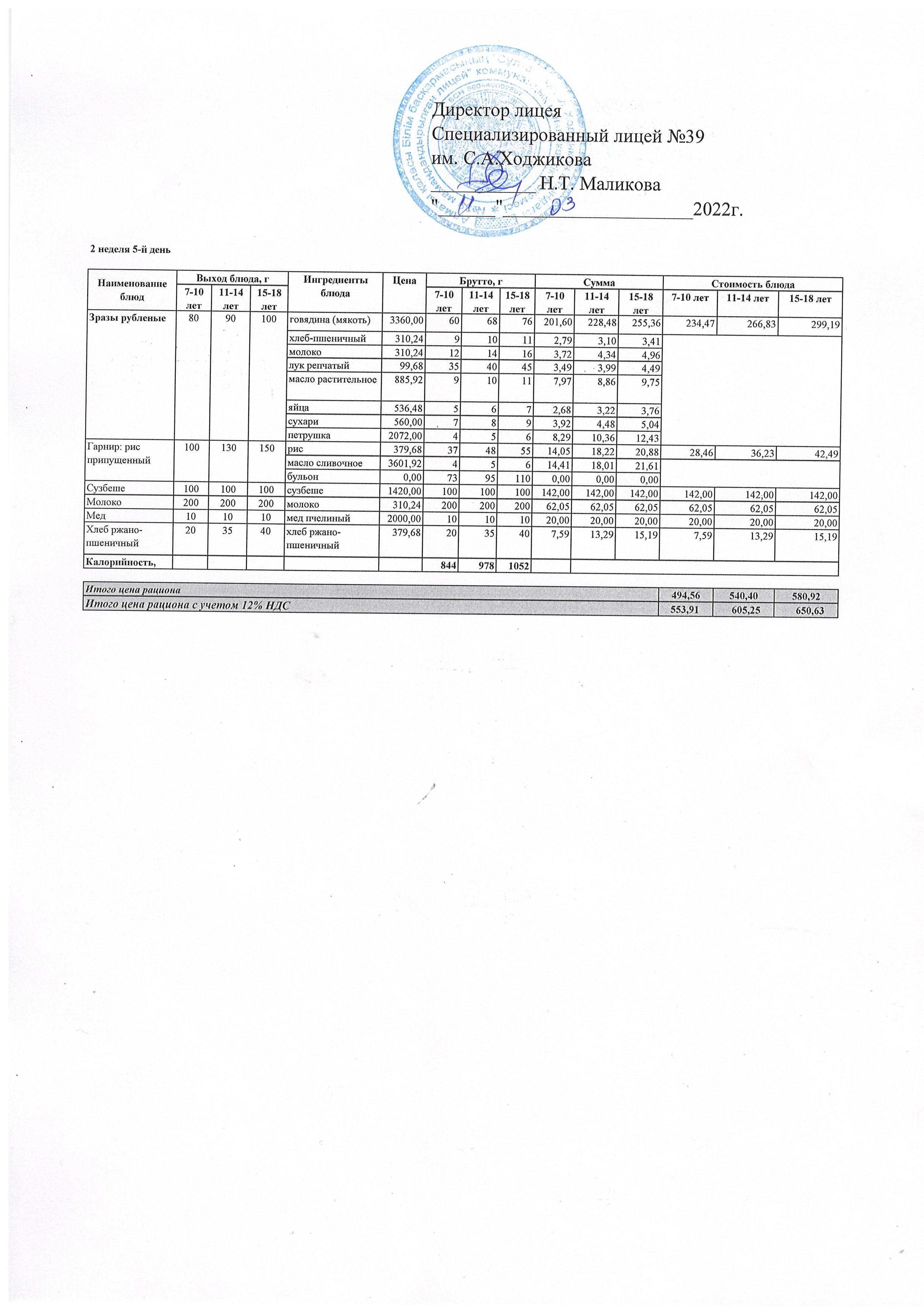 Ас мәзірі 11.03.2022ж