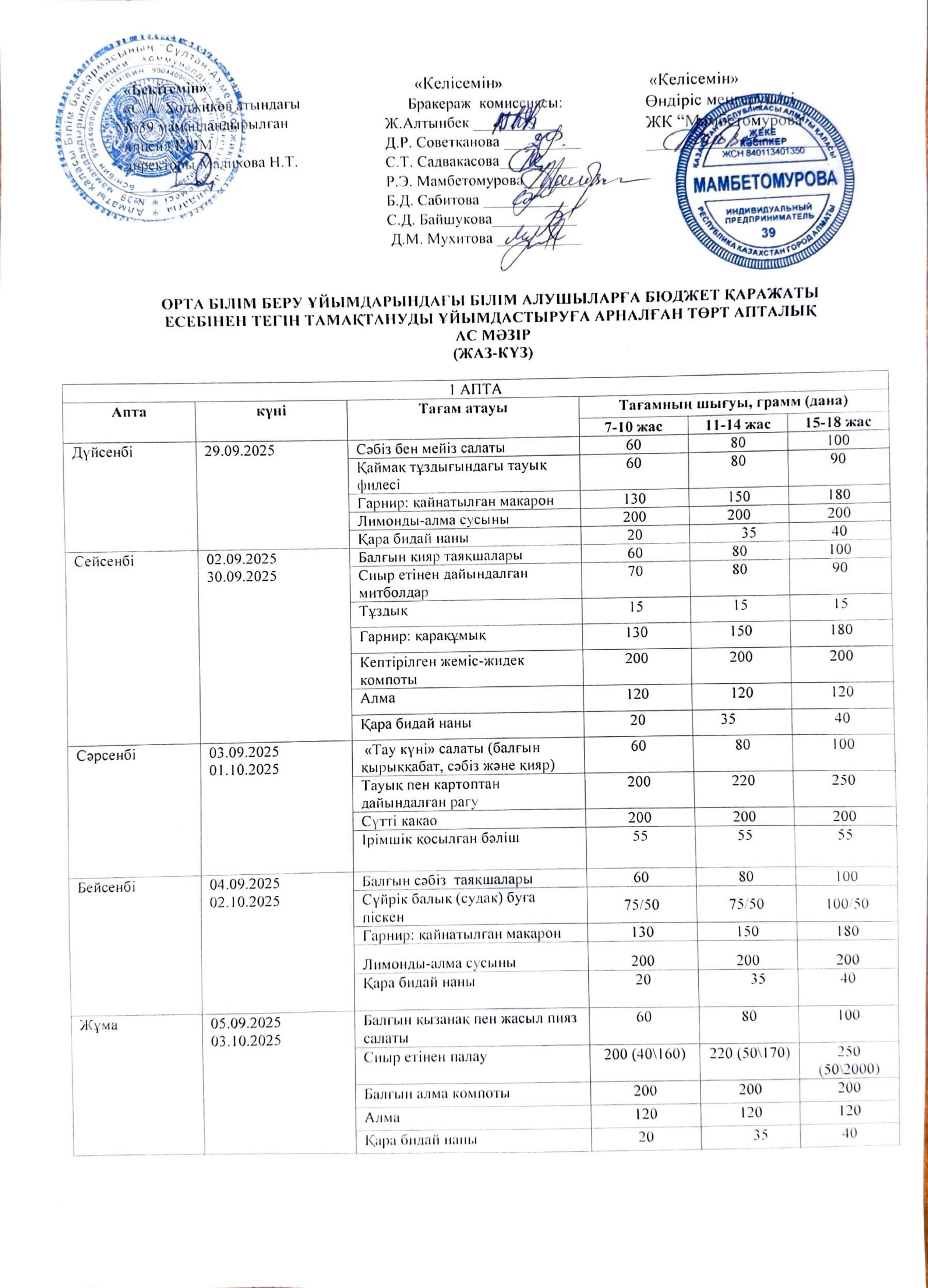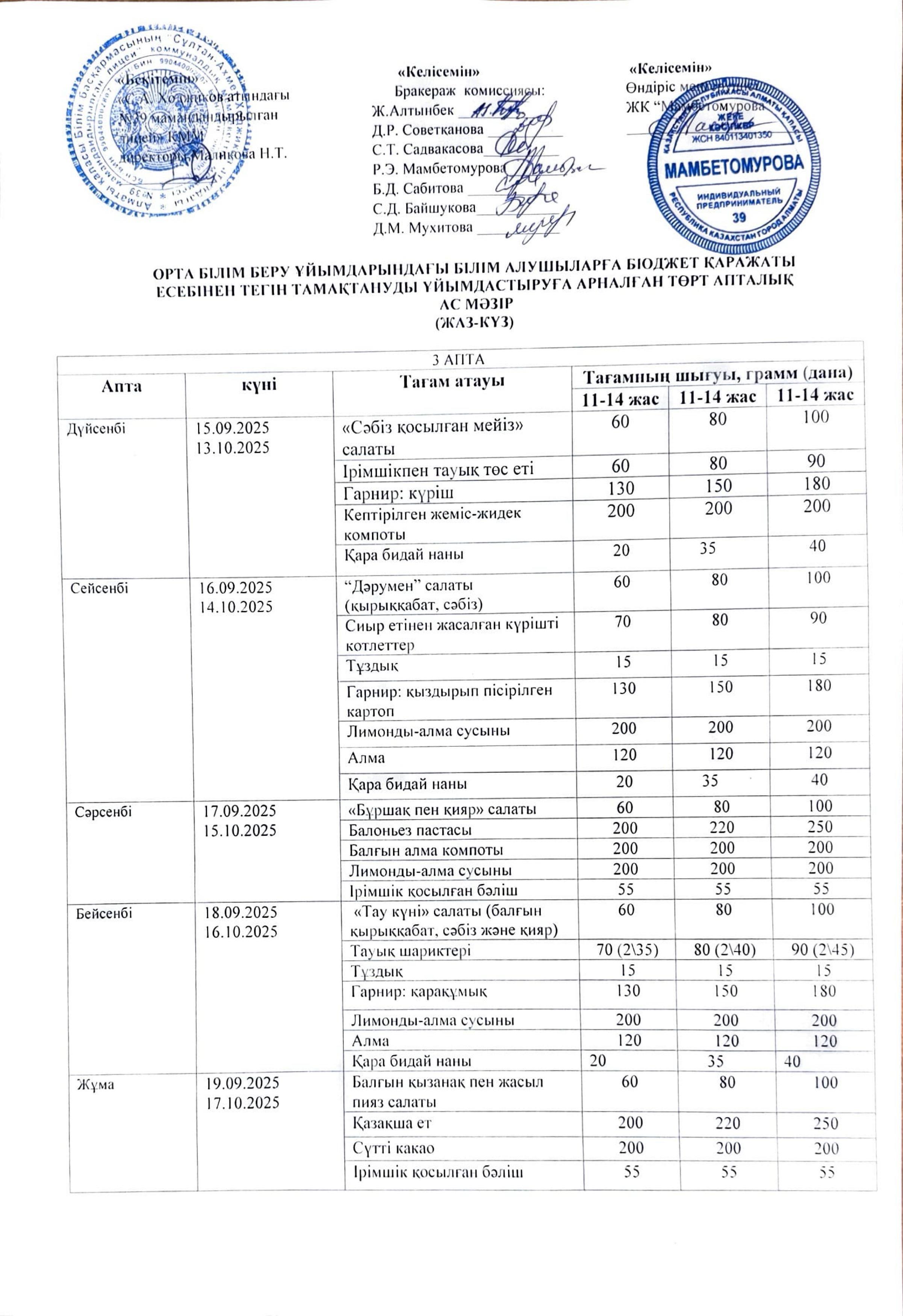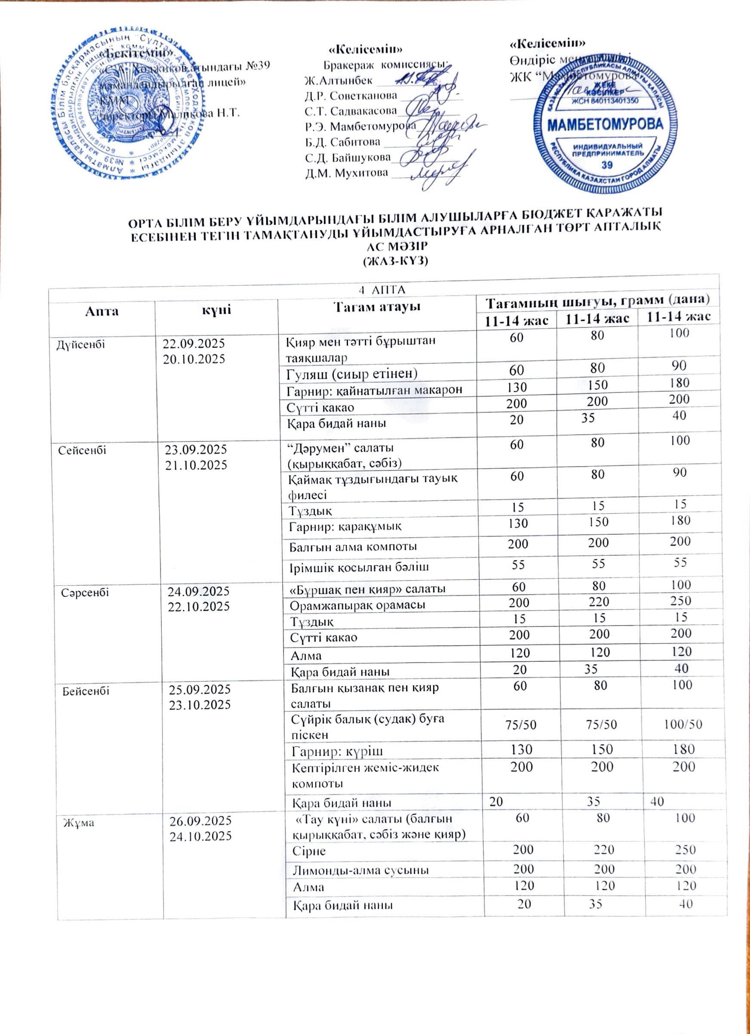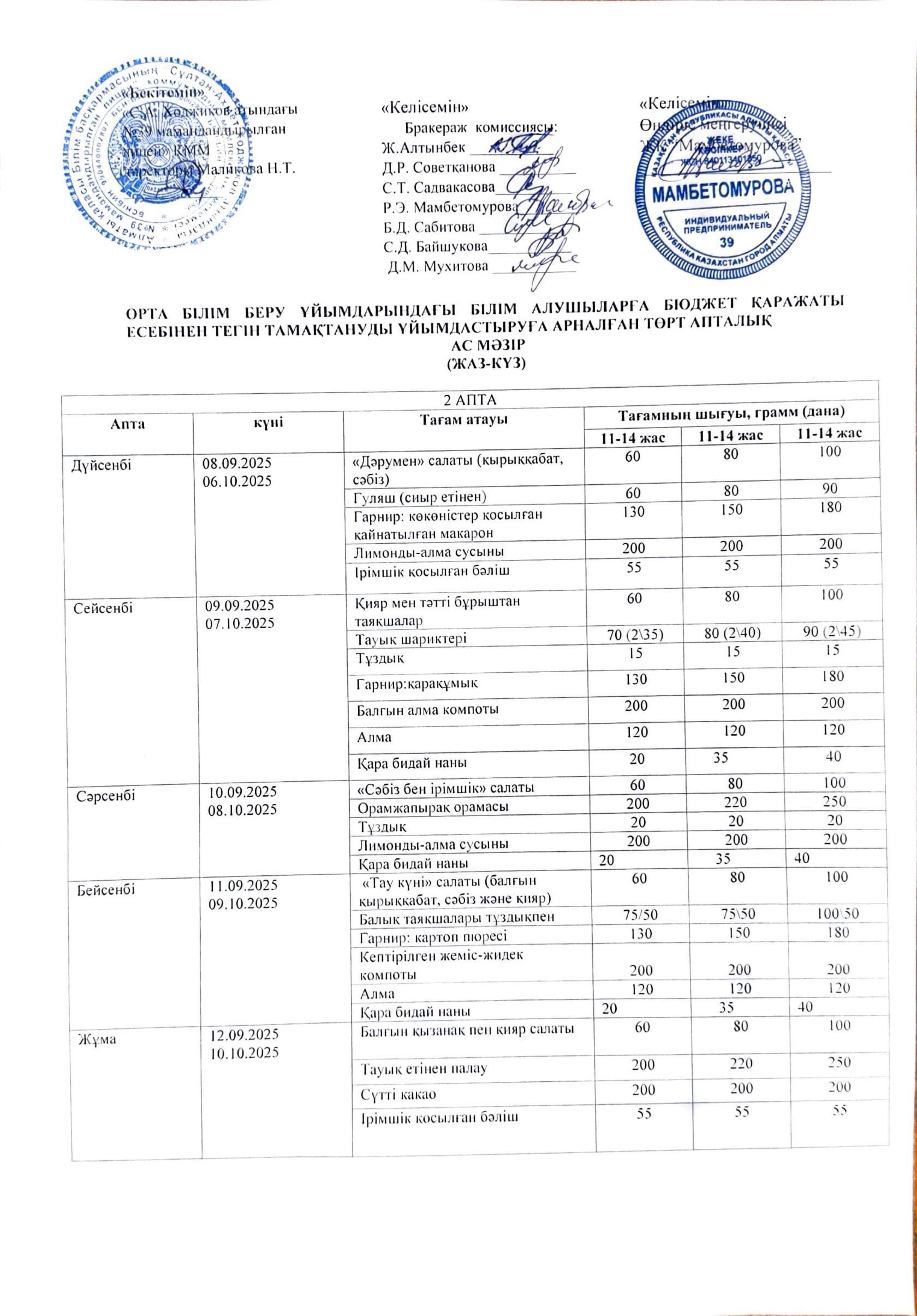 Тамақтанудың сапалық мониторингі 2025-2026 оқу жыл