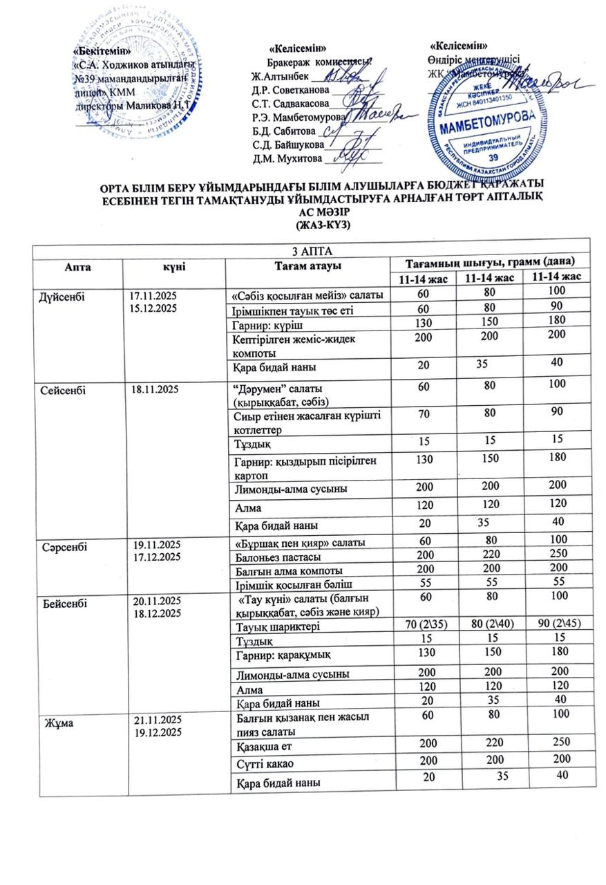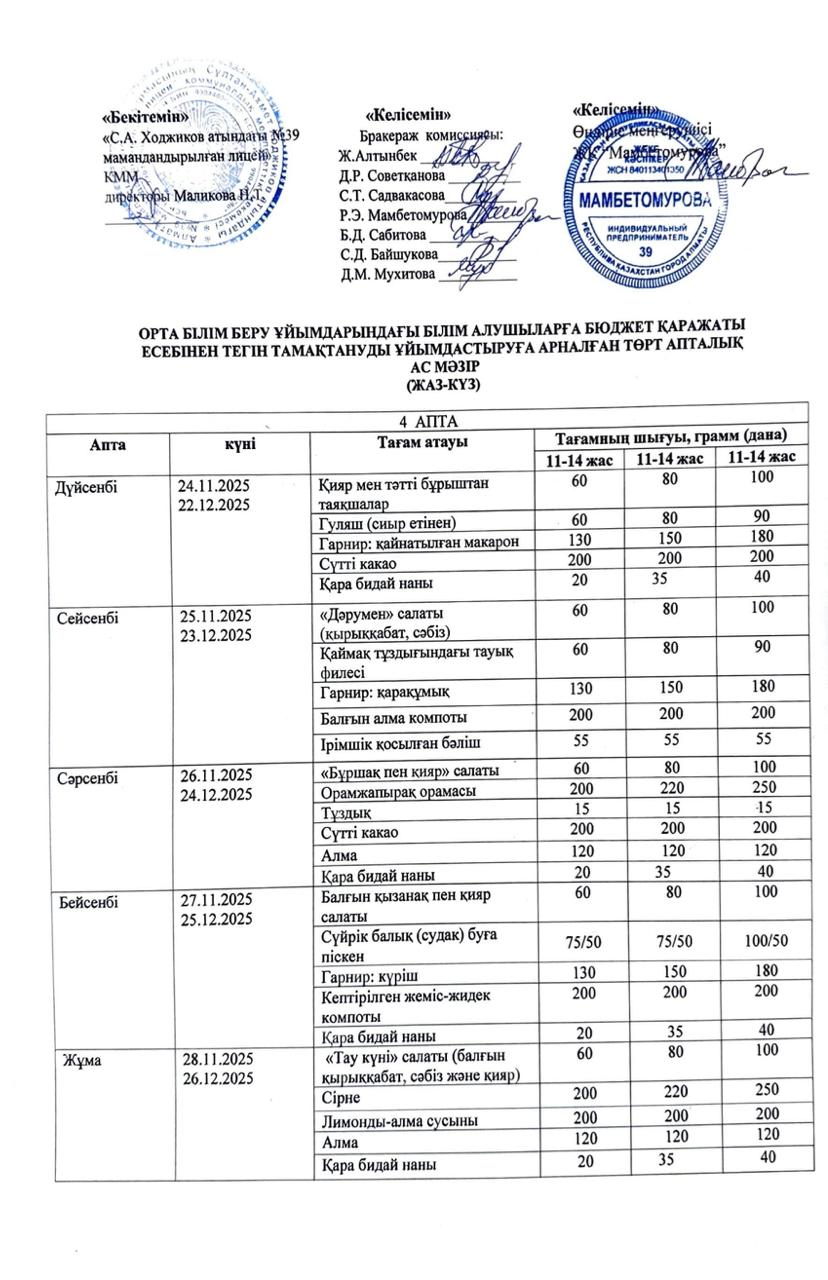 Ас мәзірі 2025-2026 оқу жылы