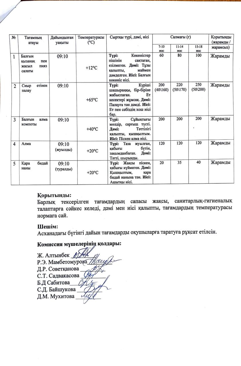 Тамақтанудың сапалық мониторингі 2025-2026 оқу жыл