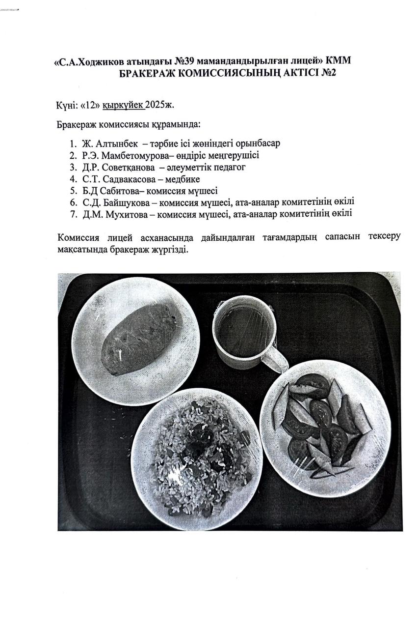 Бракеражды комиссия 2025-2026 оқу жылы
