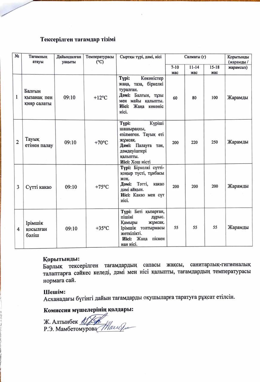 Ас мәзірі 2025-2026 оқу жылы