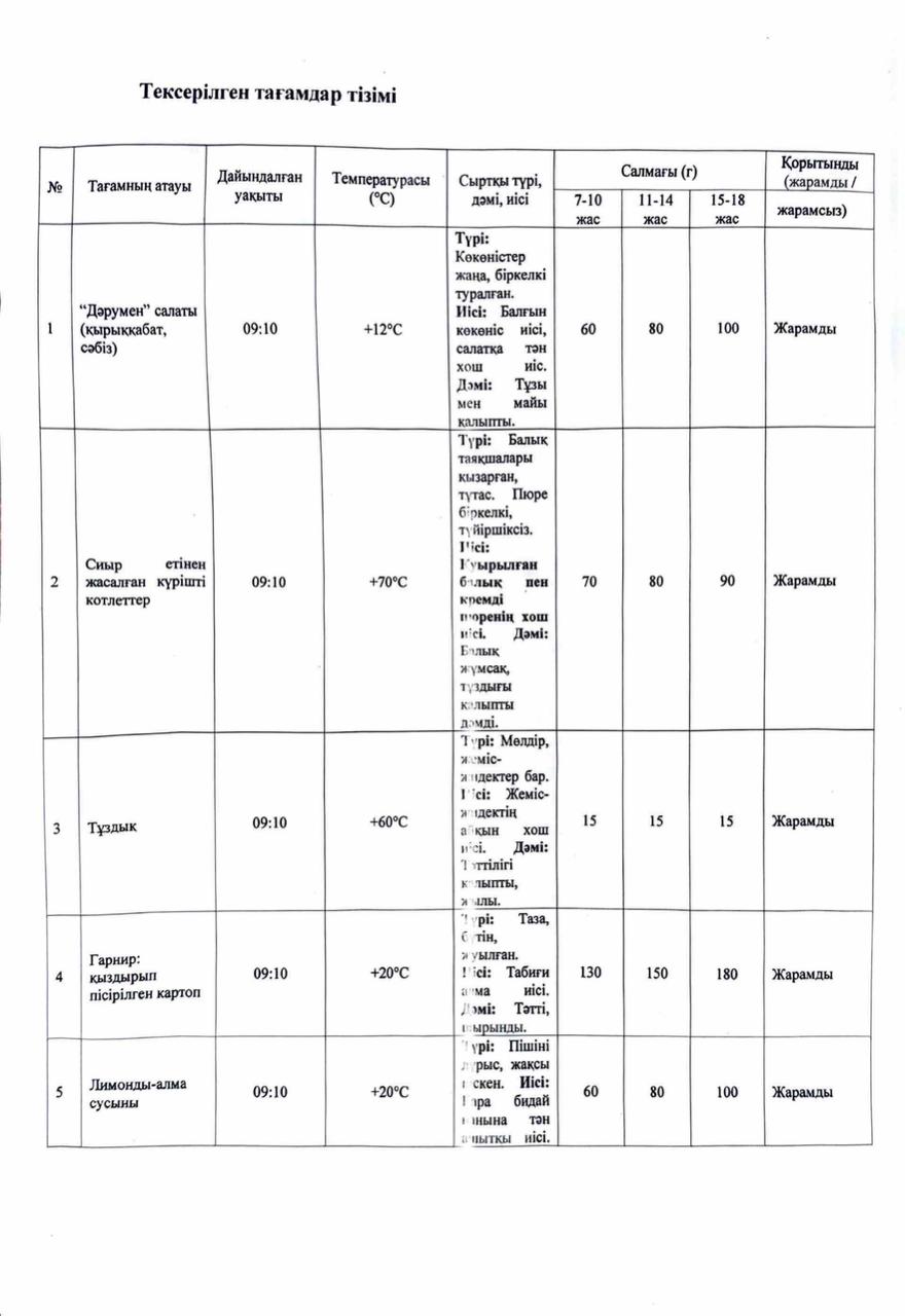 Тамақтанудың сапалық мониторингі 2025-2026 оқу жыл
