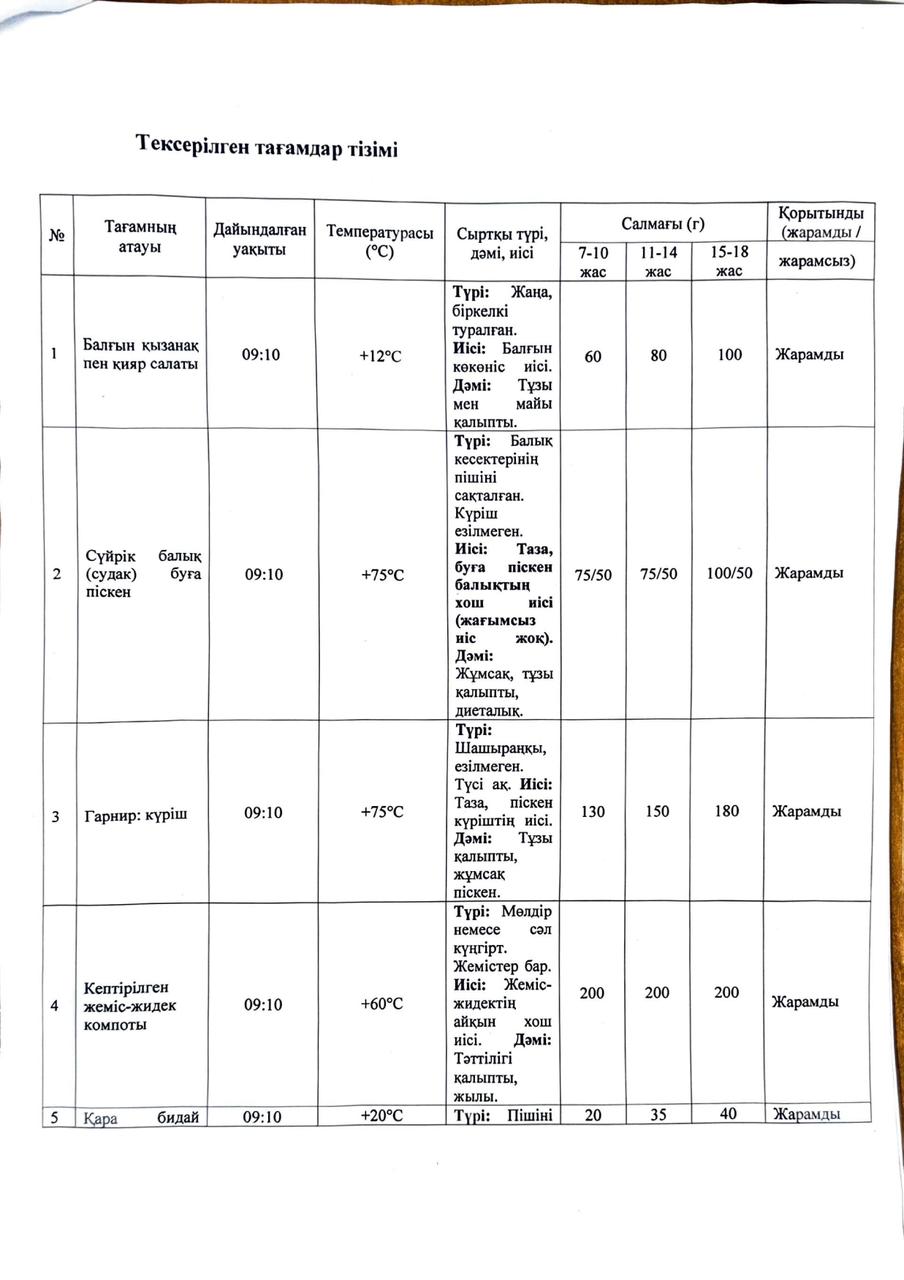 Тамақтанудың сапалық мониторингі 2025-2026 оқу жыл