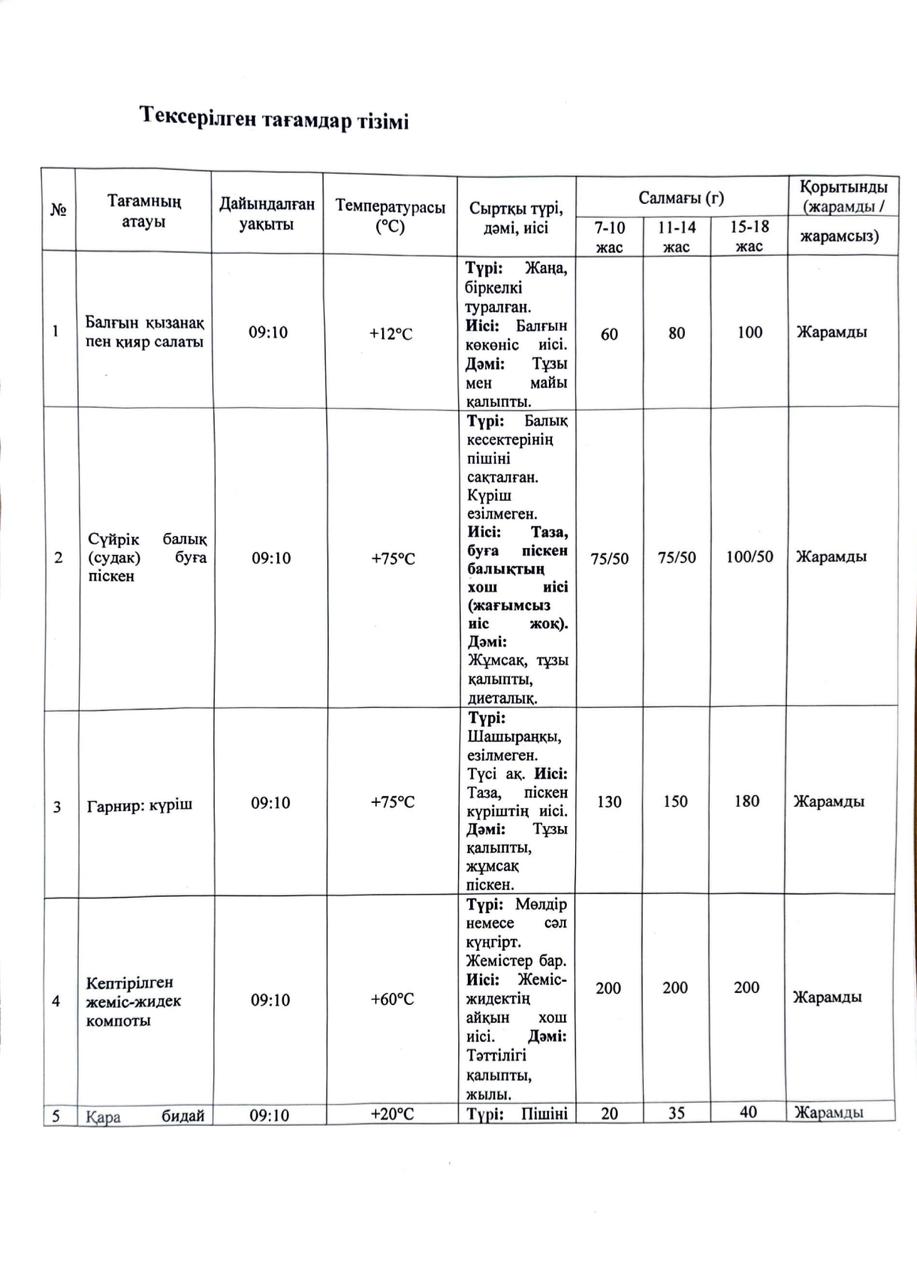 Тамақтанудың сапалық мониторингі 2025-2026 оқу жыл