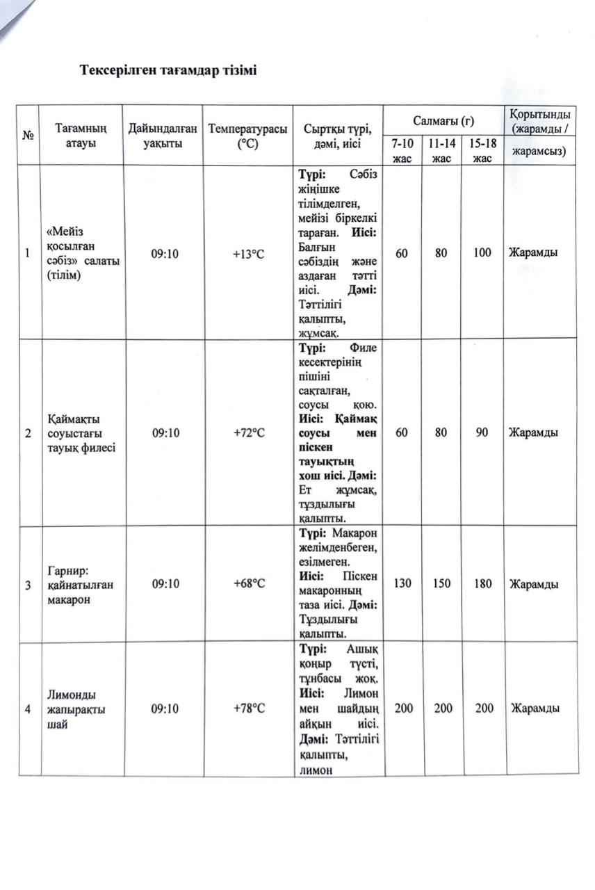 Тамақтанудың сапалық мониторингі 2025-2026 оқу жыл
