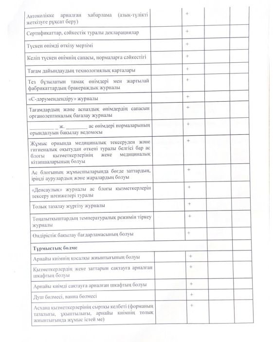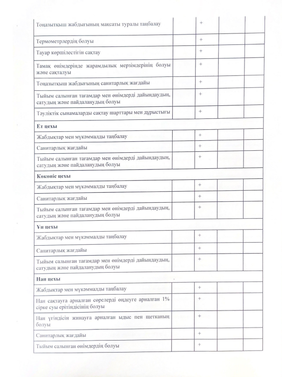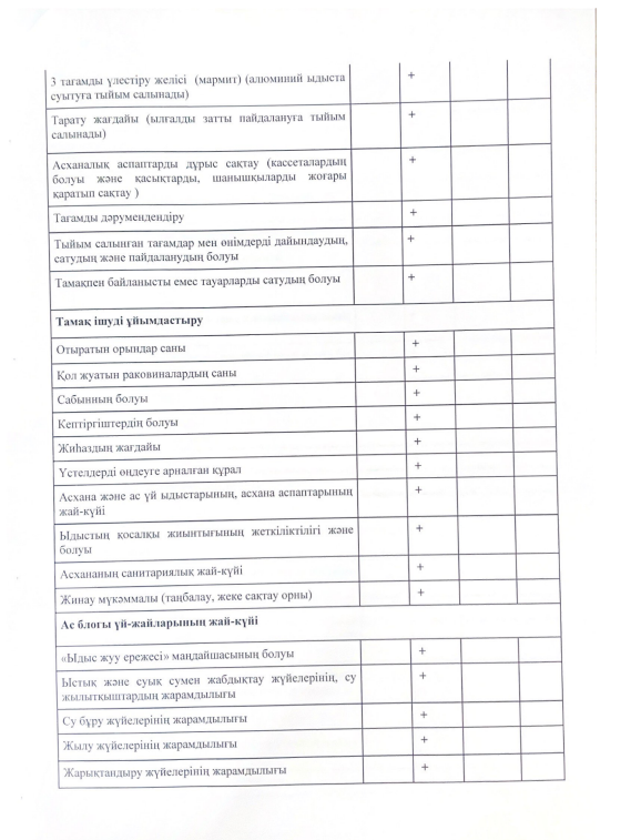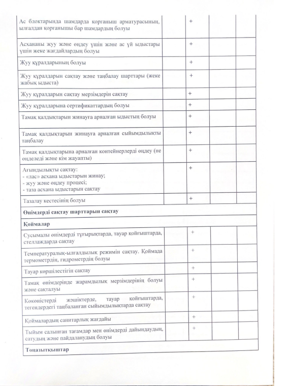 » Тамақтың сапасын бақылау жөніндегі ведомствоаралық сараптама тобы
